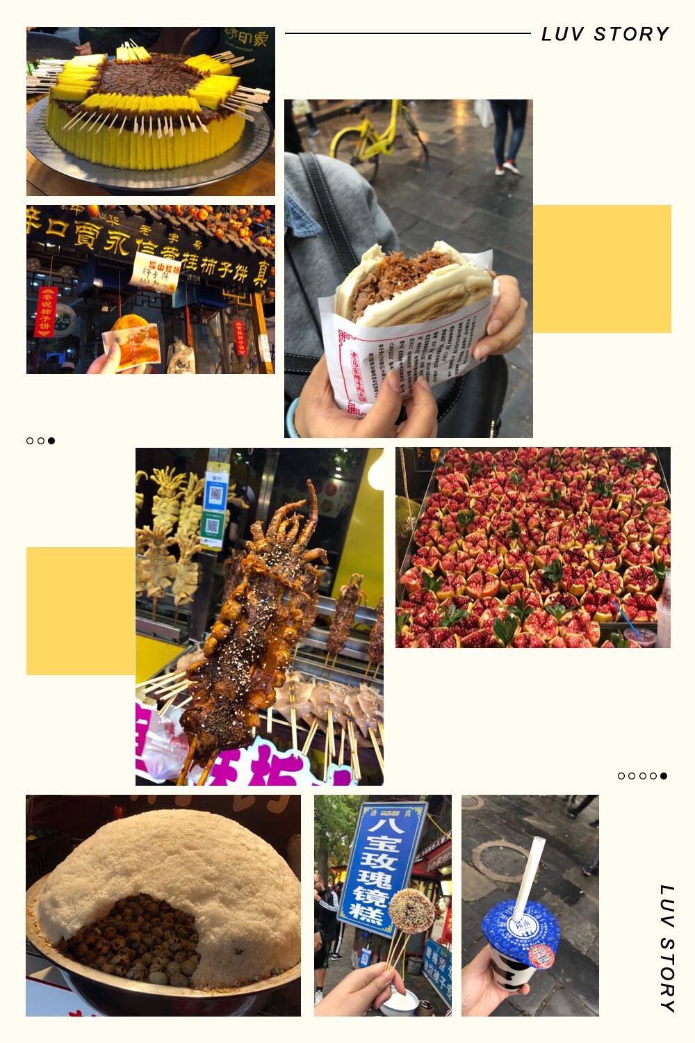 作为吃货的当然不能错过西安的美食咯。上图给大家,是不是也和我一样,口水直流了呢。羊肉泡馍,biangbiang面,肉夹馍,肉丸胡辣汤,灌汤蒸包,牛奶醪糟,子长煎饼,花椒酸奶,裤带面,长安大排饭……是吃货的天堂啊!