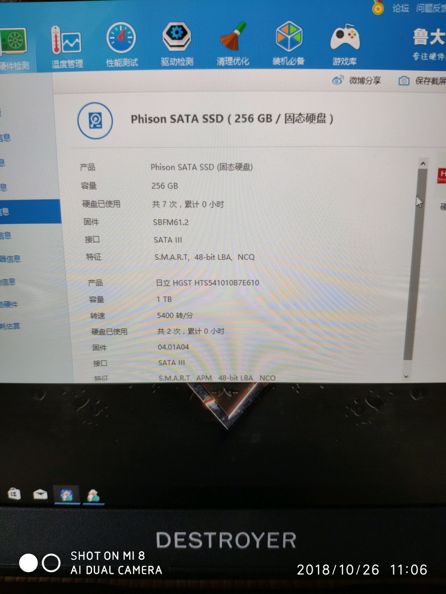 D面进气格栅 进入桌面很快 固态分区好的 鲁大娘安装中