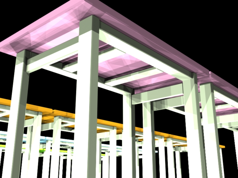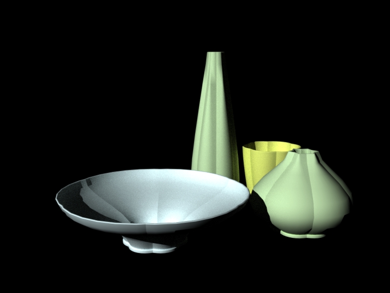 长方体、复制、位移、修改尺寸、修改颜色、渲染关闭全局照明、用泛光灯