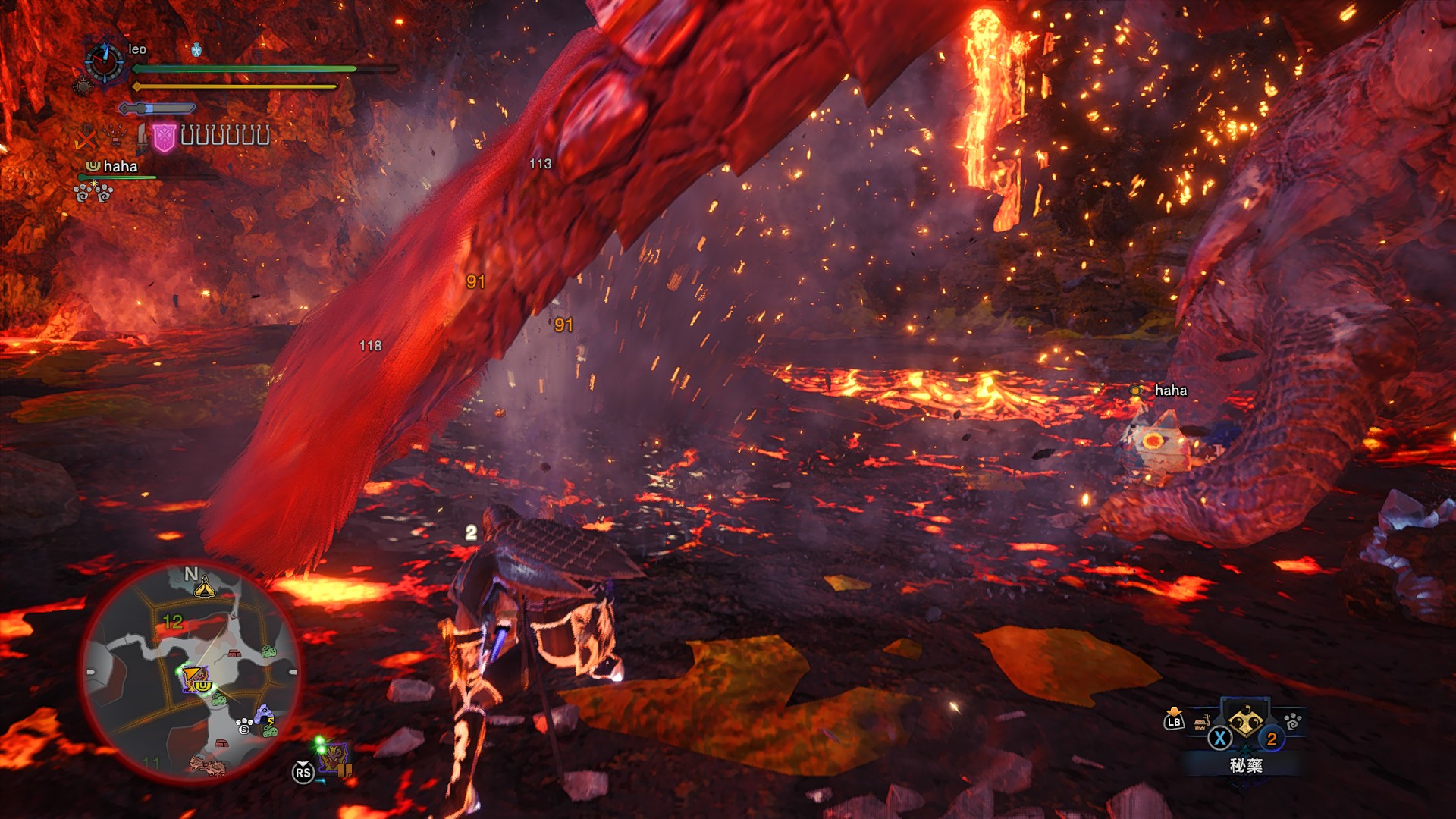 同一套配装,没吃猫饭,看耐力便能看得出来,体力是因为上面磕了个秘药,buff栏也没有任何攻击力加成。猫能看道具栏是带的掠夺猫,不会有吹笛子的可能。上图瓶子伤害只有68,而下面瓶子伤害有91.我现在的结论就是对于历战怪而言,怪物有个基础的肉质水平。而盾斧的瓶子所谓的无视肉质,在我的理解来看是将怪物所有部分的肉质看作基础肉质。所以有些时候看历战古龙的视频就不用再介意,哎,为啥我和他一样的配装,他瓶子伤害那么高啊。我想这也是ta为啥要以自由的古龙来进行比较了。