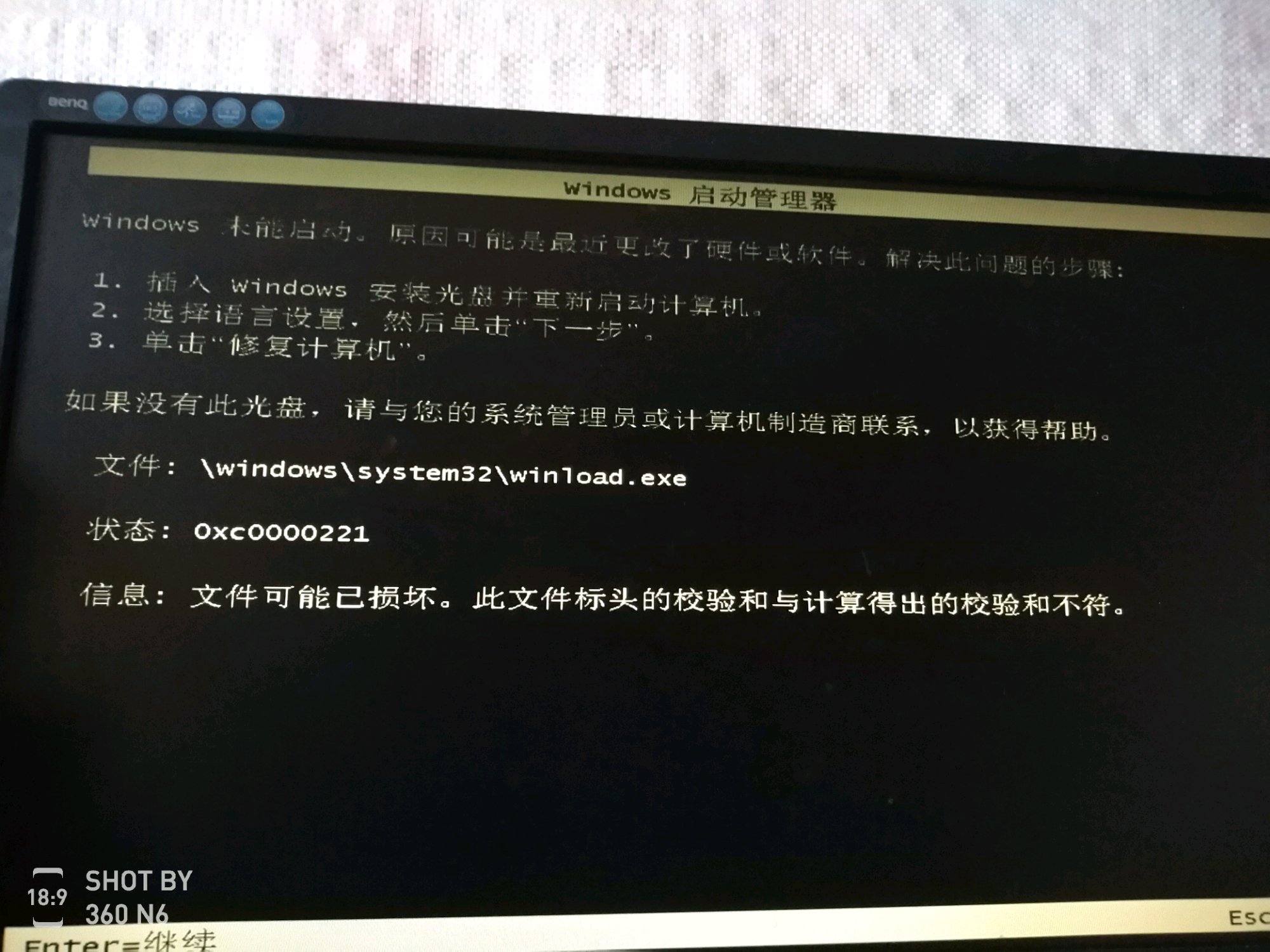 装完系统就出现这个文件有问题,但是进PE又替换不了这个文件