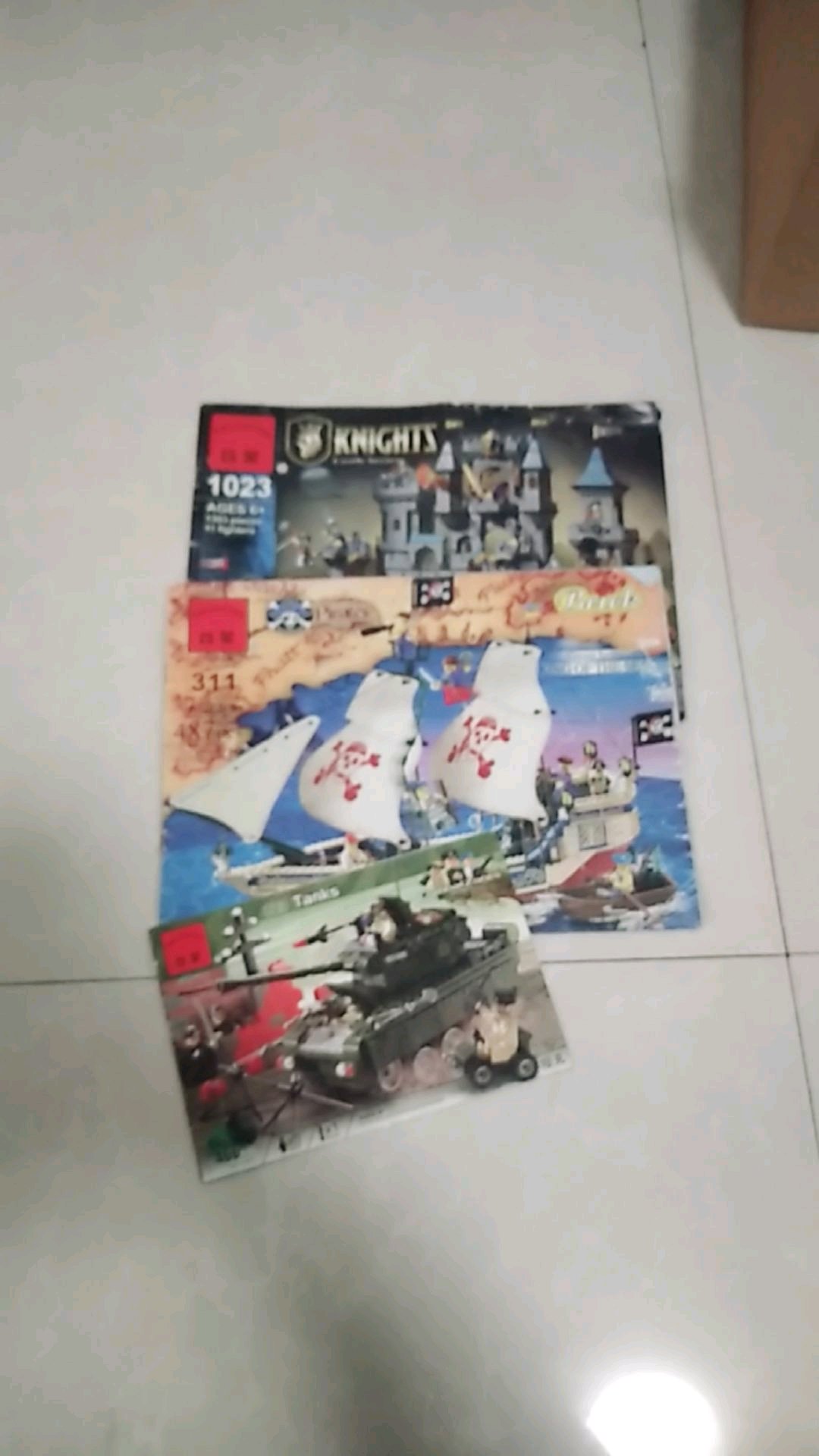 启蒙积木,311霸王号,1023狮王城堡,823坦克三个型号的,打包200包邮,入手大概500,重3.5kg,总数2400片。有点灰尘洗一洗就干净了。