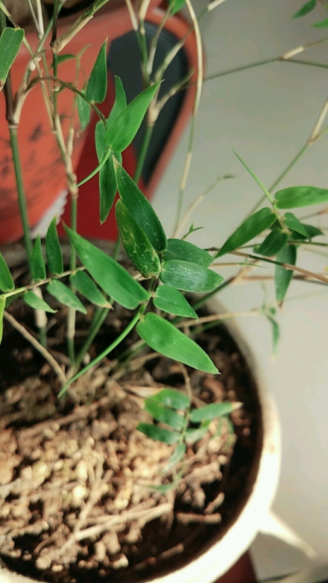 各位老师,俺的小竹子出现干叶,叶子上有类似锈斑的东西,请教是