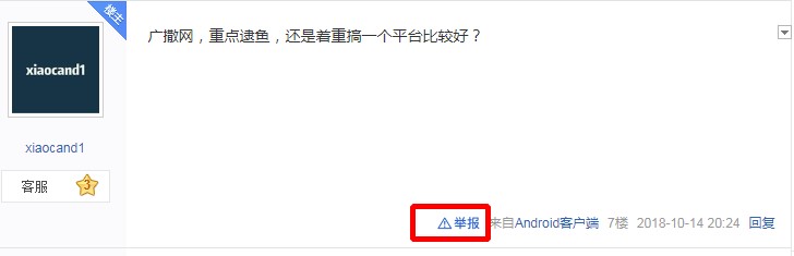 手机端用户:点击您要举报的贴子右上方的三点水符号,即可进入投诉页面(如图1),电脑端用户点击违规贴子楼层下方的举报按钮即可进入投诉页面(如图2),进入投诉页面后选择您要举报的类型,选择权利人类型,点击下一步,补充完善权利人信息,注意*为必填项~点击提交即可投诉~如下图: