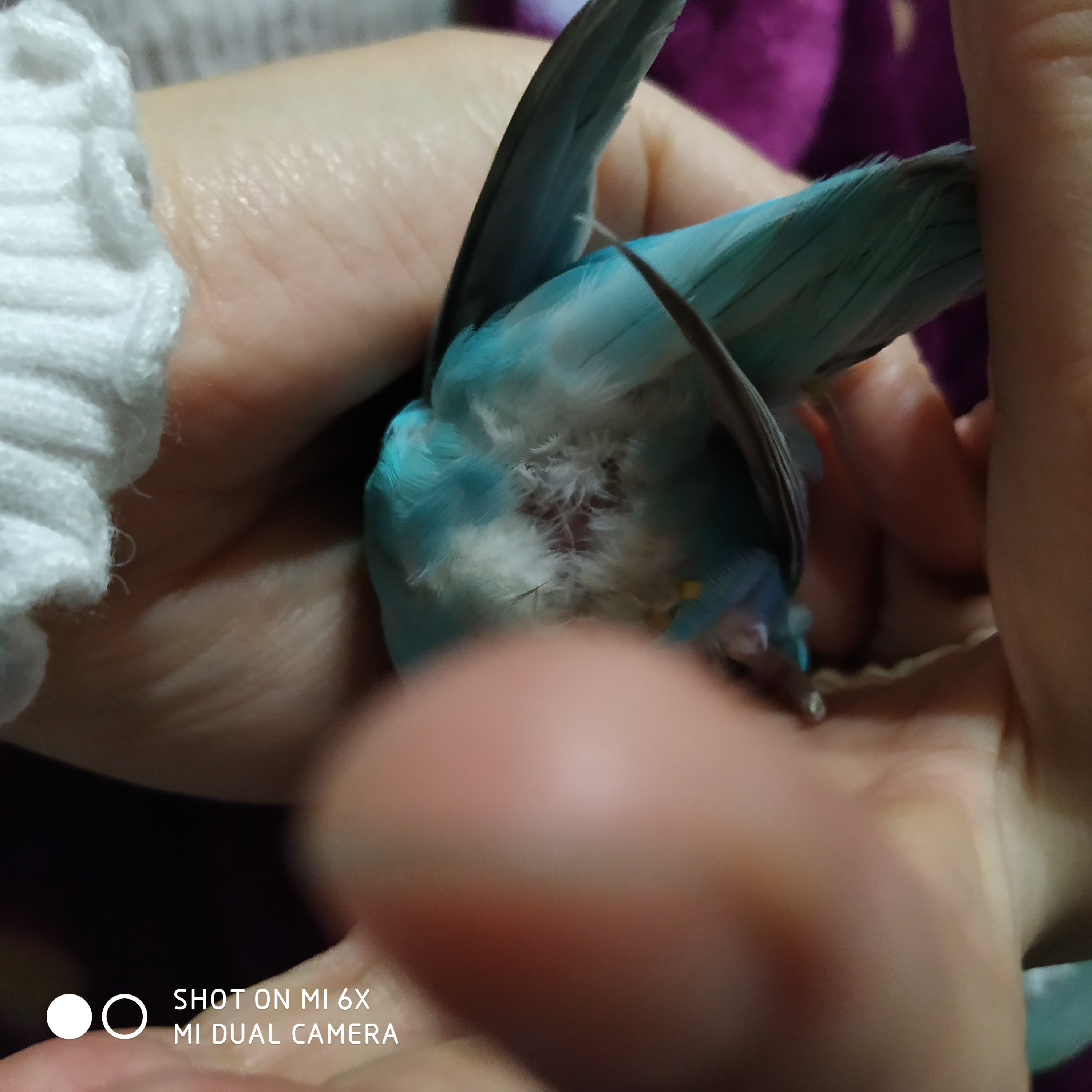 刚才自己从笼子里走出来,有点打蔫,飞不动了