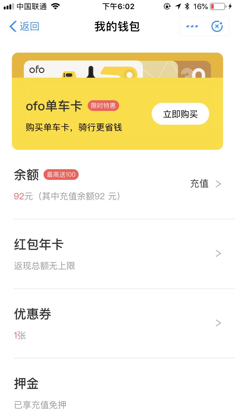 小黄车好坑啊,昨晚我好像充值了100,结果我扫了5辆车,都是