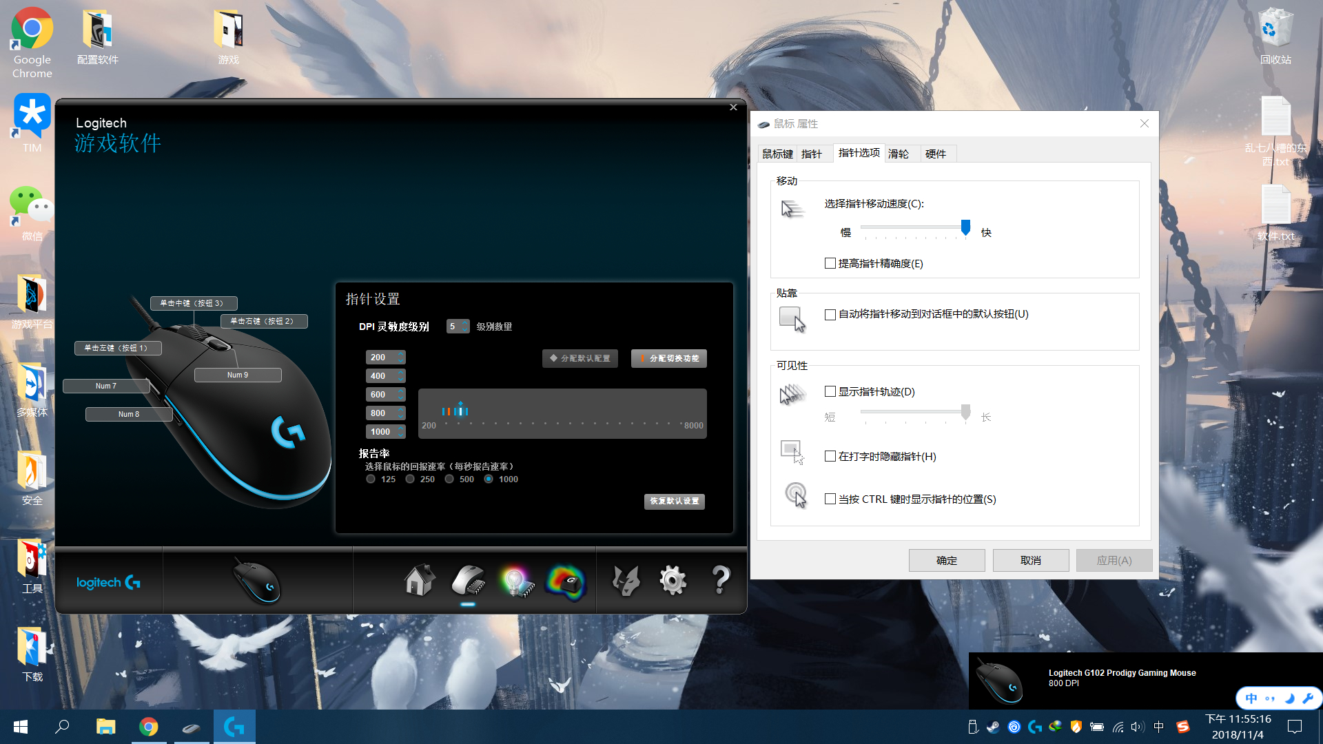 本人目前用的鼠标是罗技g102,dpi800,win10鼠标加速满格。如下图