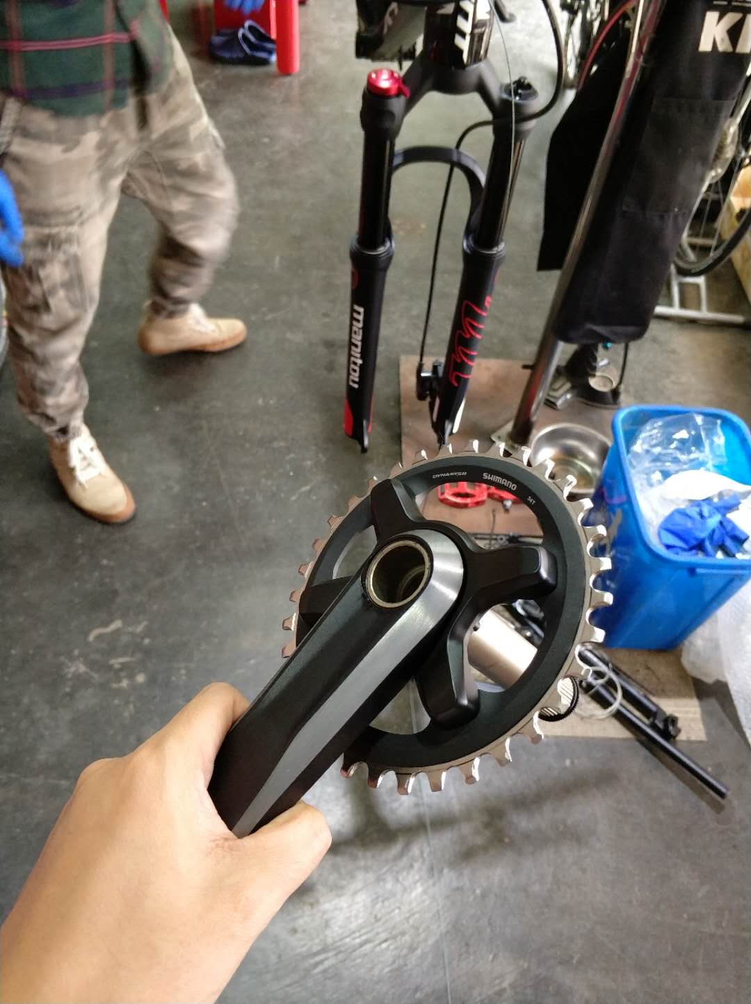 继续看西大校长的帖子,请教配件细节,确定换前X,换套件!这里并不是盲目花钱,原装前叉不仅重,没有减震,爬坡时候锁紧力又不行。原装牙盘中轴不仅重而且稍微发力就咔咔作响。确定18款的XTC800可以直接买椎管前叉,计算完自己需要的前后齿数,确定八横长度,就开始买买买了。由于我动手能力极差,这些配件只有邮寄到了车店。