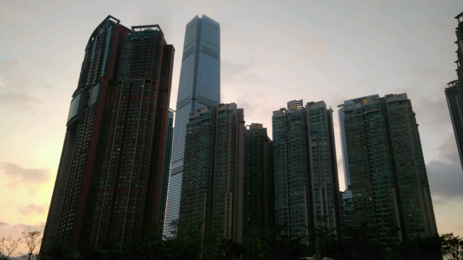 西九龙站外景色,绿化空间不错,有步梯直上站顶,能看到半个维港吧