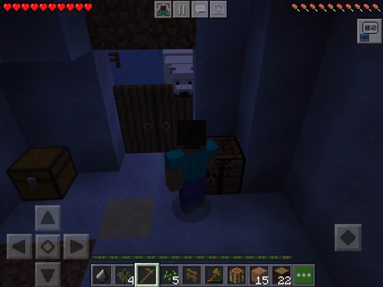 后来 又有了灵感 我把家后院墙给拆了,让他对骷髅情侣出来,过一天去看果然没了,房间里有几个水坑,不知道是不是水坑生成的骷髅