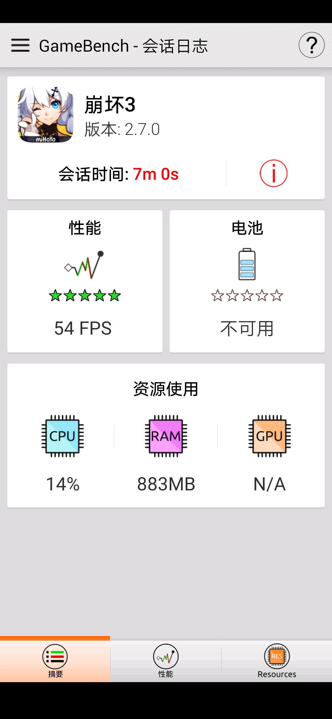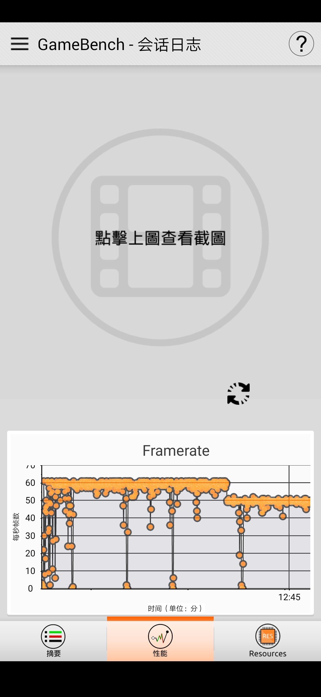 然后接下来的一层变卡了,帧数掉到50-54,但是平常玩没有遇到这种情况。我猜测是因为手机连着电脑充电(gamebench要手机连着电脑,我也不想),所以导致发热降频,平常在地铁玩没有试过如此不流畅