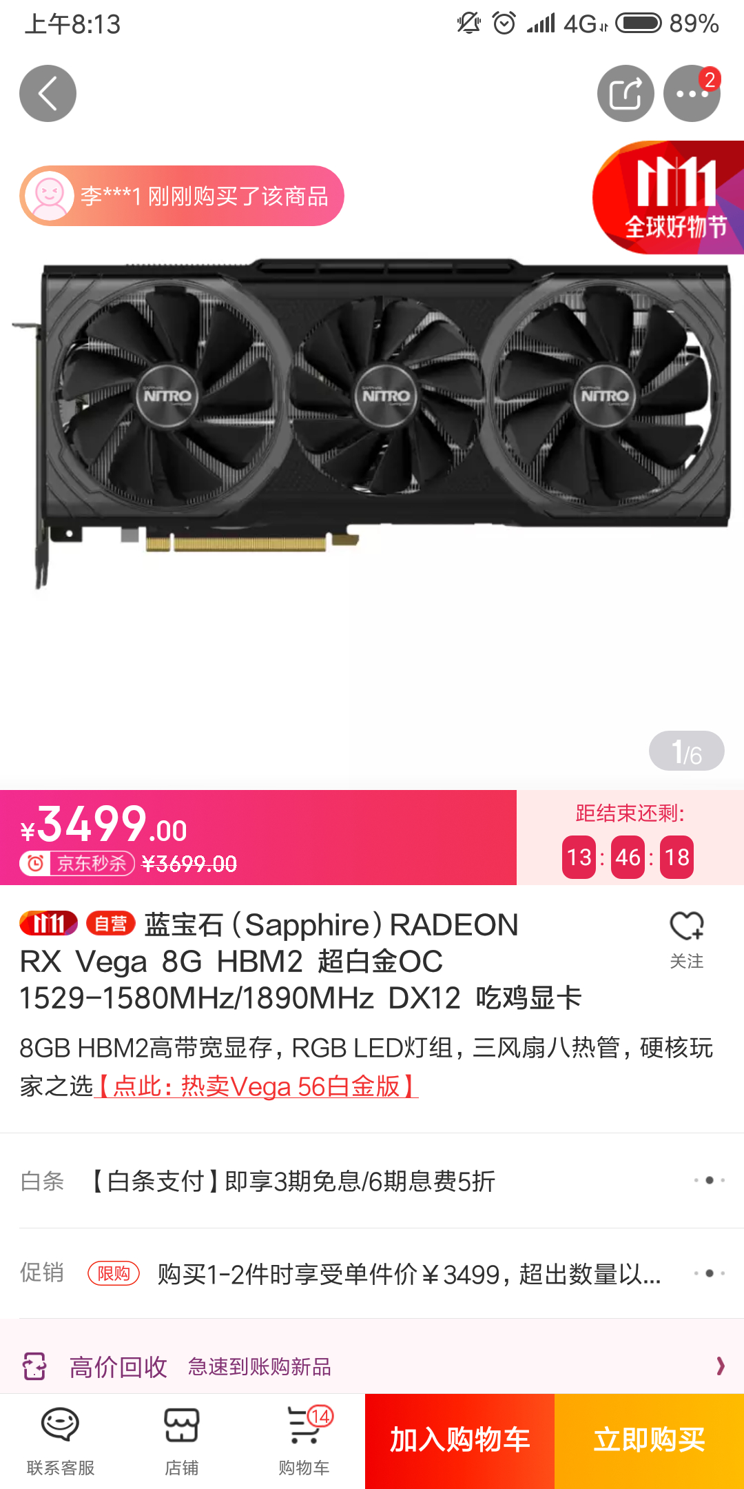 昨天一时冲动入了vega64,今天发现自己电源线只有8+6,而vega64要8+8供电接口。我暂时只接8+6能用不啊?