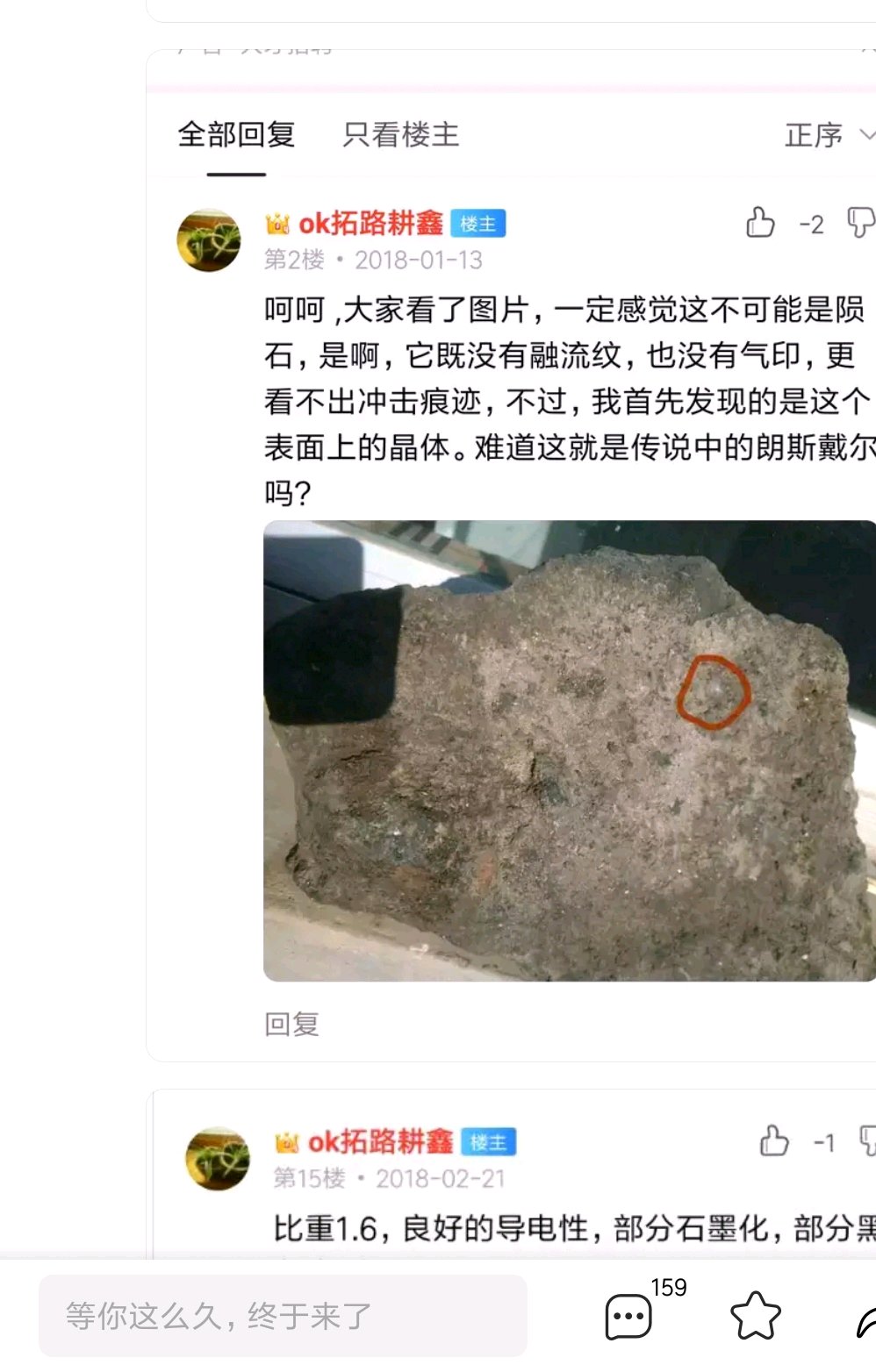 回复 遇石呈祥 :别吵,在拍陨石,刚刚捡了个漏,28元拍到一块西北非