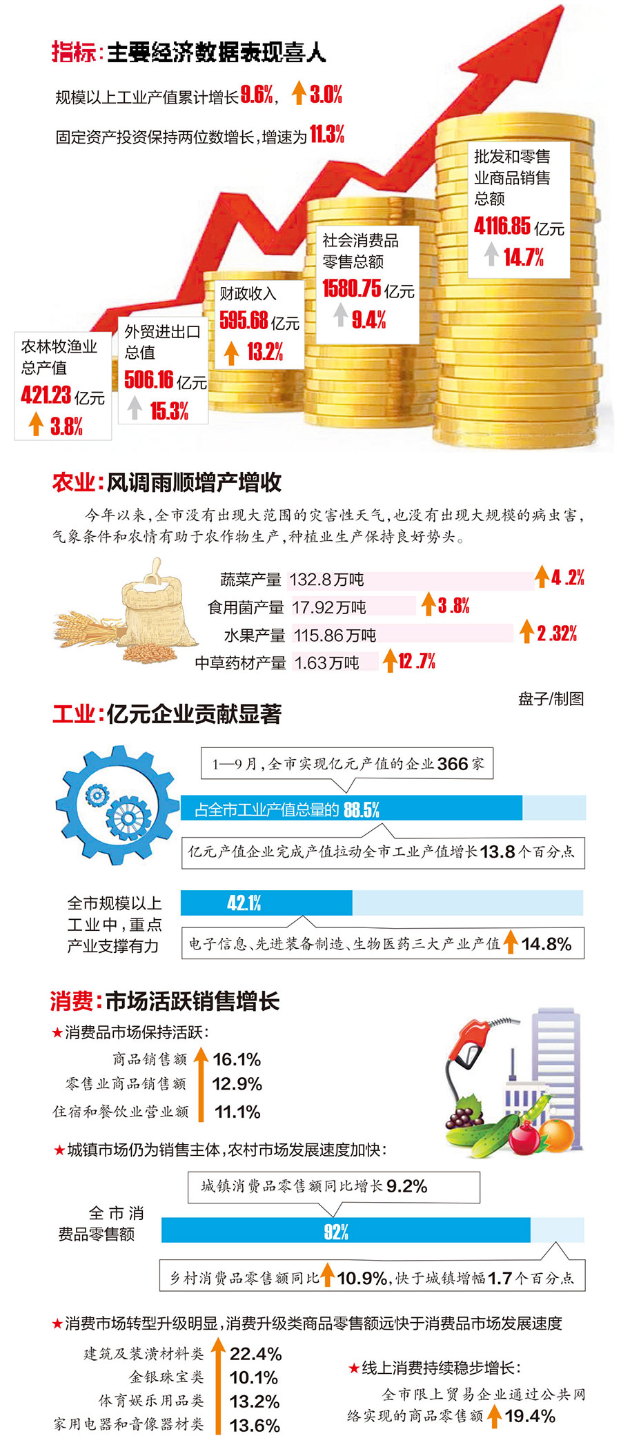 昨日,南宁市统计局发布2018年三季度南宁市主要经济数据。经初步核算,1—3季度全市地区生产总值按可比价格计算,比上年同期增长6.4%。其中,第一产业增加值同比增长4.0%,第二产业增加值同比增长3.5%,第三产业增加值同比增长8.8%。总体来看,前三季度GDP增速稳步回升,全市经济运行态势向好。