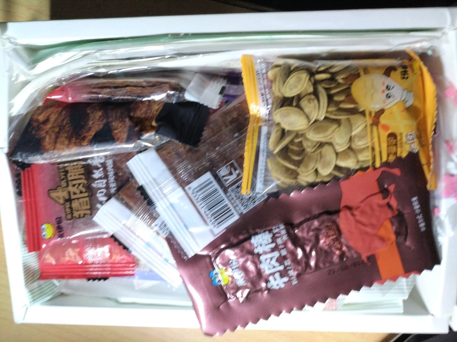 小姐姐人真的超级棒!!!其实全家福里面少了一包猪肉脯,因为它在我的肚子里,哈哈哈哈。