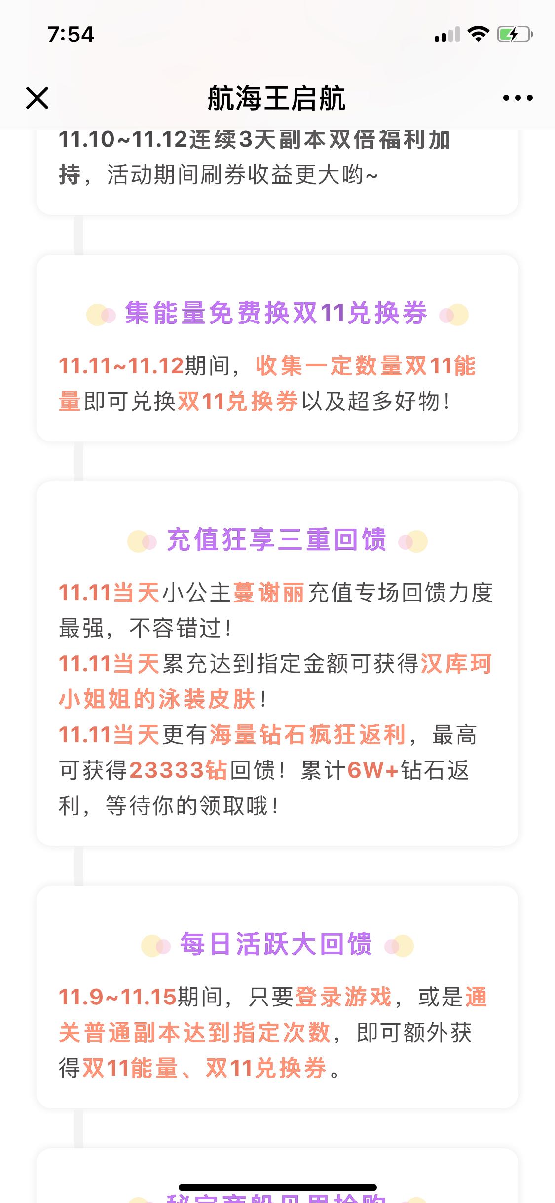 这波双十一当天充值回馈给不少东西呀,喜欢新世界草帽团皮肤的这次也可以买到