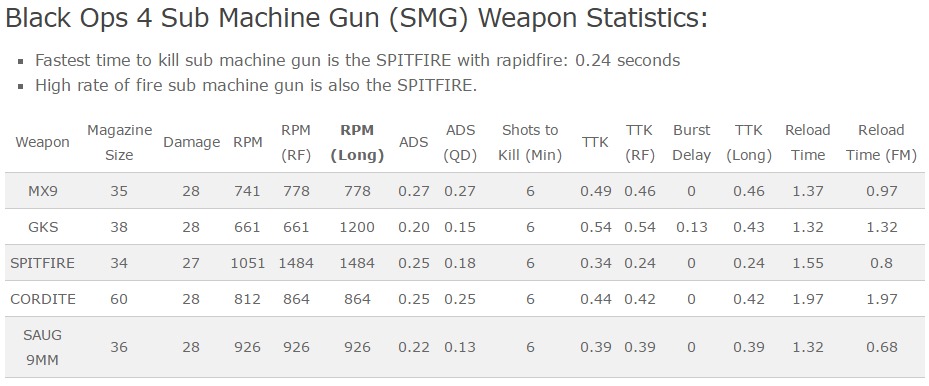 另外一个是武器的伤害,TTK,换弹时间及换弹时间的表格