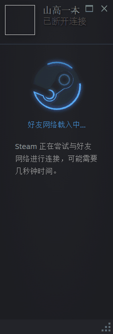 如图,从10月开始,我的这个好友网络就一直断开链接,不管等再久也不会连接上。我看了贴吧很多大佬提供的方法,卸载重装,把语言改成英语或者繁中,挂加速器,在steam快捷方式加个 -nofriendsui,清理缓存,改hosts等等,都没有用,如果有什么解决方法,求大佬告知
