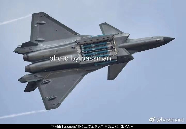 以前一直只知道歼20的弹仓大。但一直没什么概念,这次算有概念了,两个弹仓塞了四枚PL15,作为隐身战斗机,这弹仓尺寸可谓相当惊人了,如果换成PL12,塞六枚估计还有不少空间。