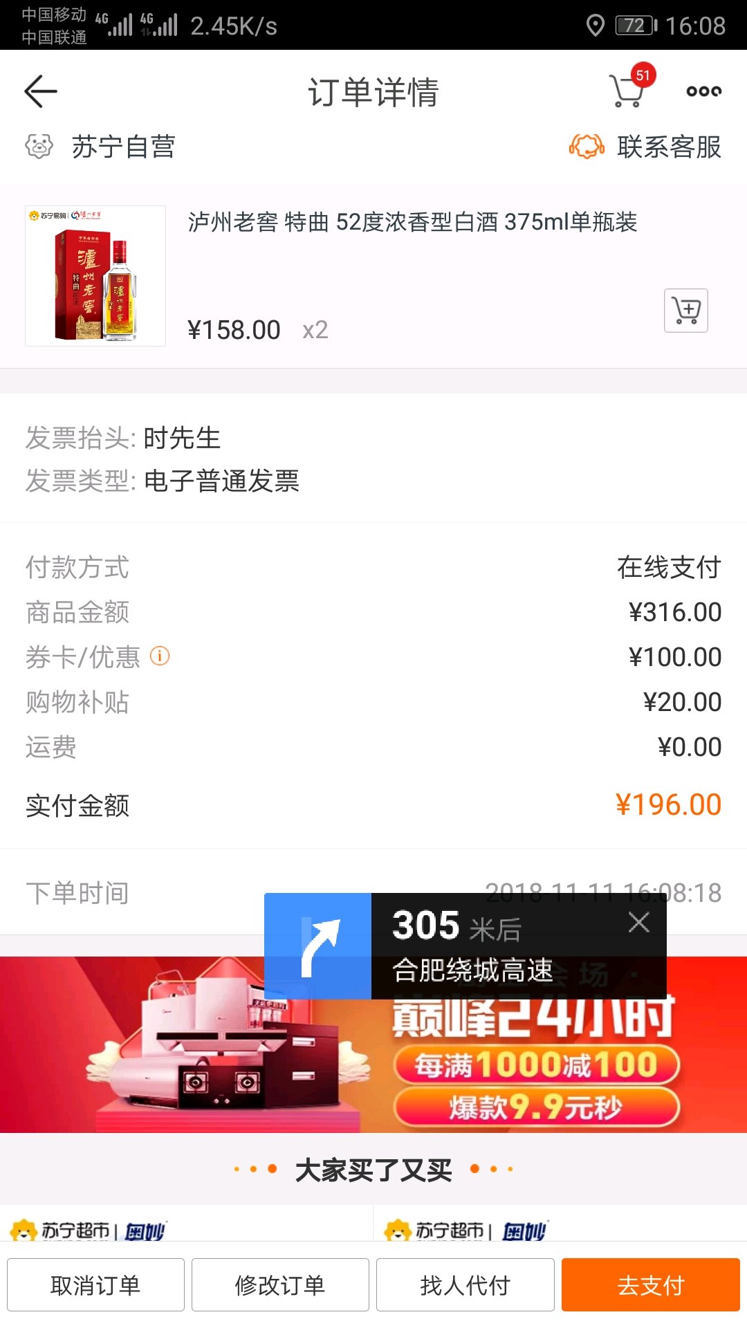 这般时候了,还有特曲375ml每两瓶196。有木有意思,各位