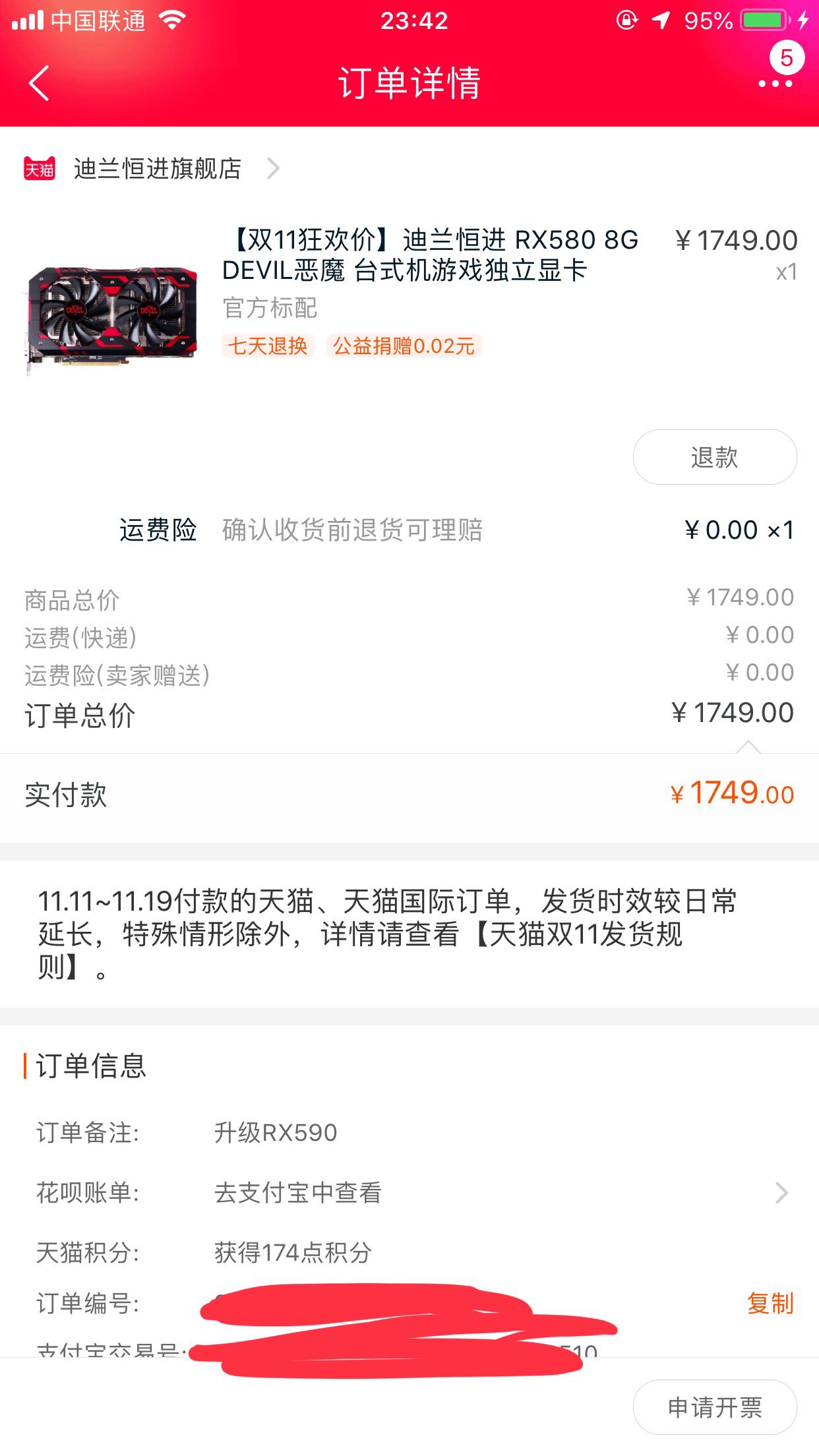 可以1750买恶魔rx580,备注升级rx590