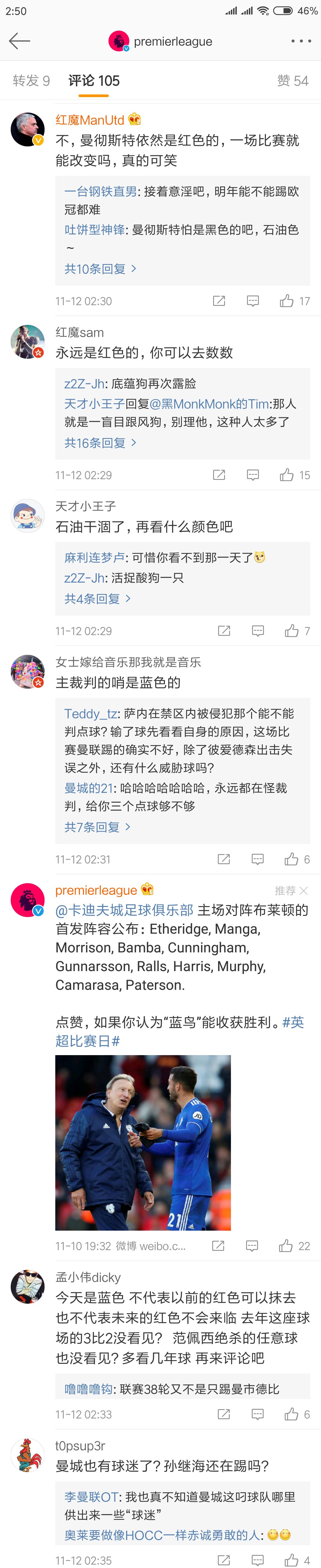 从6比1那场就已经是蓝色了 酸有啥用 现在的曼联踢的都是些什么