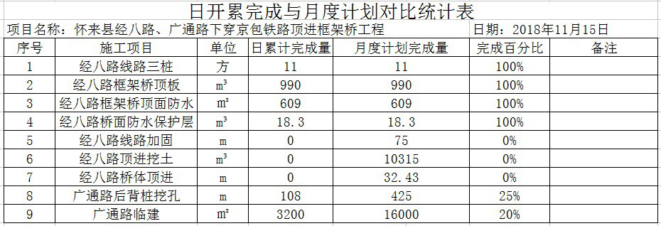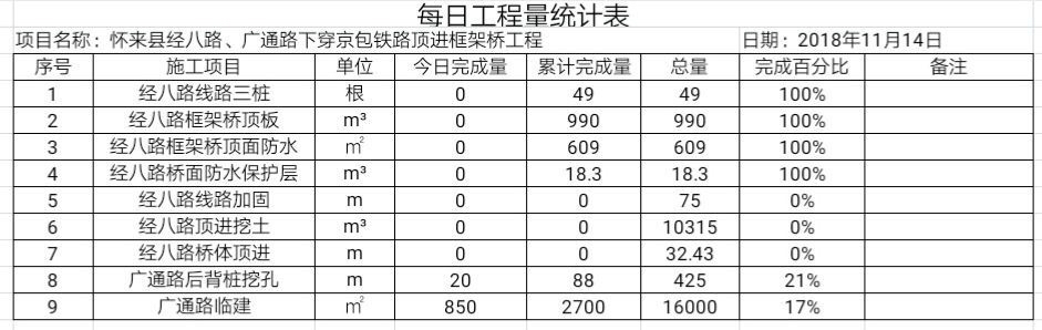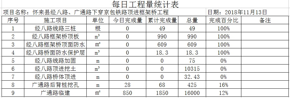 怀来县经八路下穿京包铁路顶进框架桥工程: