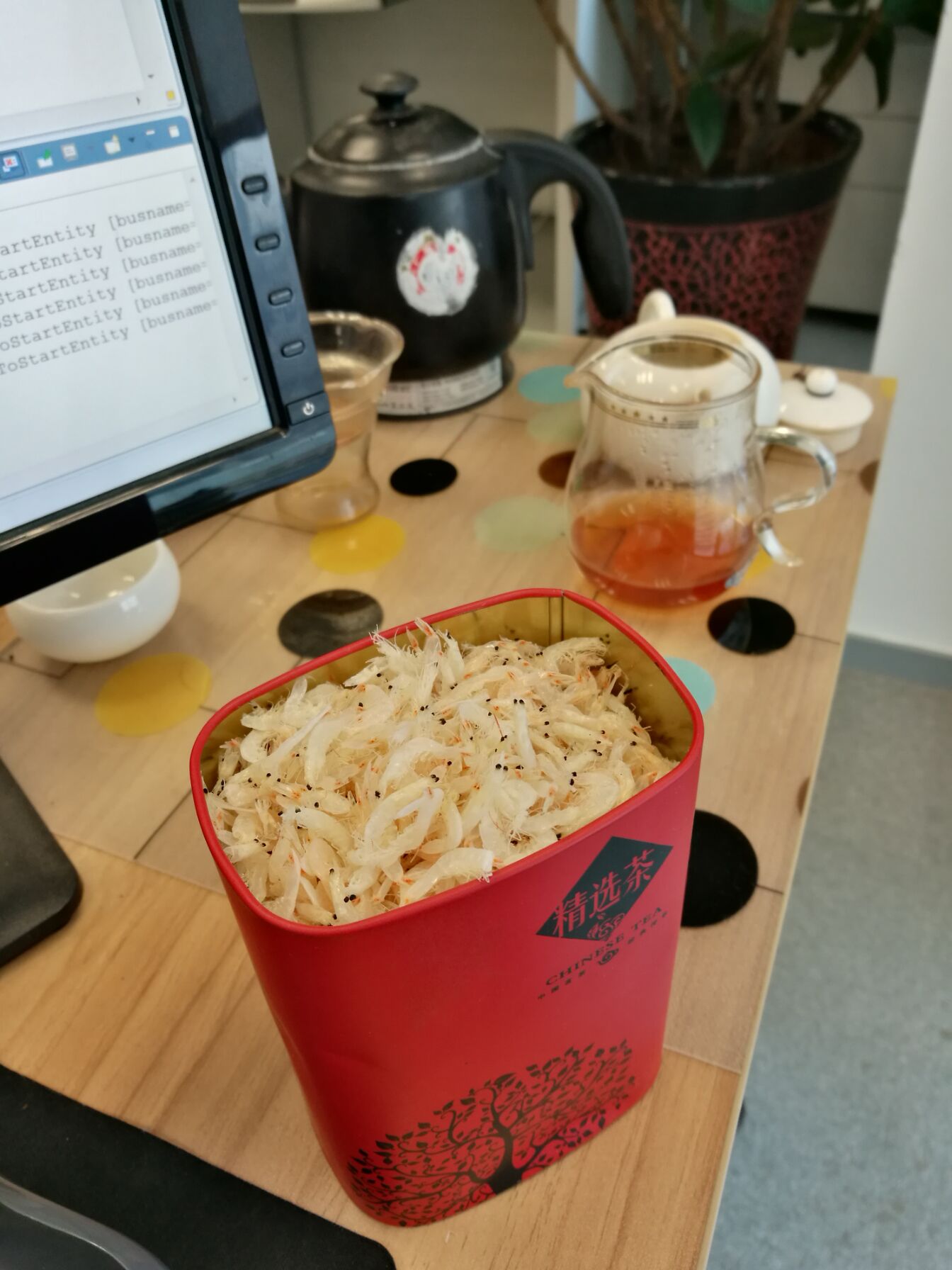 光喝茶嘴里淡出鸟来,买了斤虾皮当茶点,味道还不错。