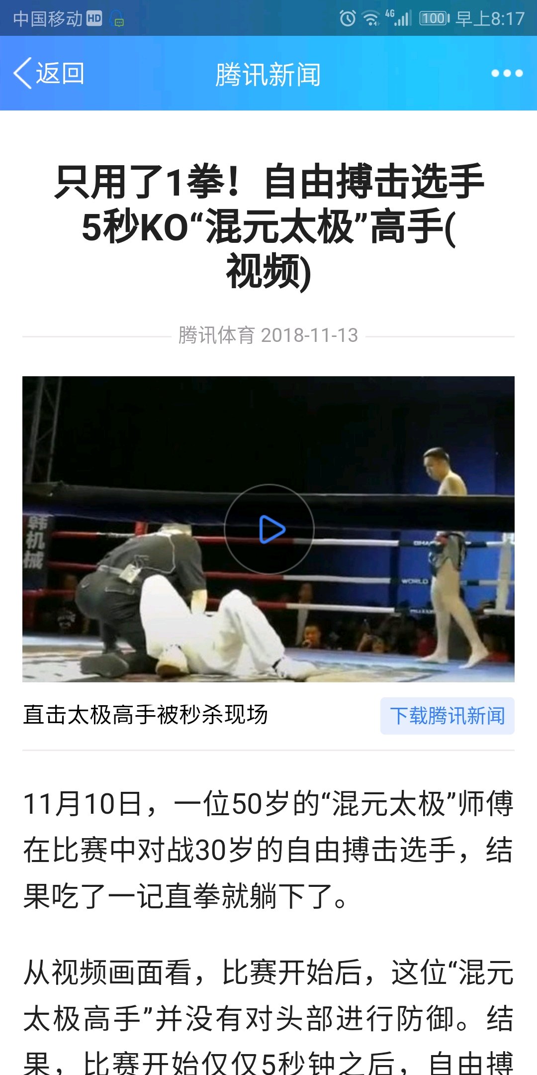 我觉得五十自由搏击真的可能打爆30的太极高手