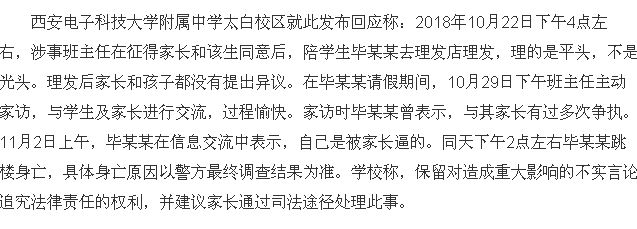 西安15岁初中生被老师带去理光头 十天后跳lou身wang