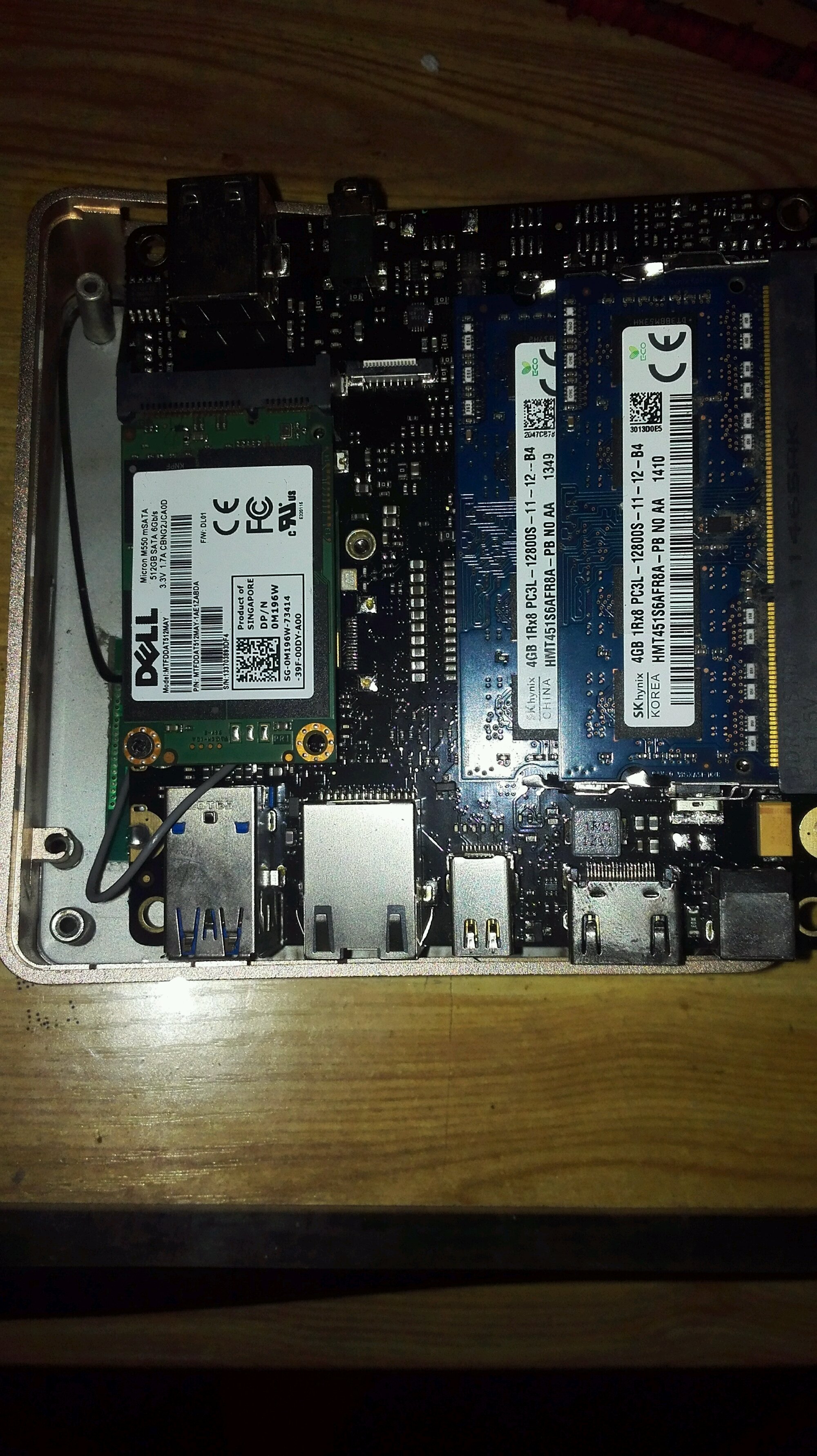 那两根黑色飞线连的就是网卡,看样子是在msata硬盘下面?512gmsata...这个买时得2000了吧?