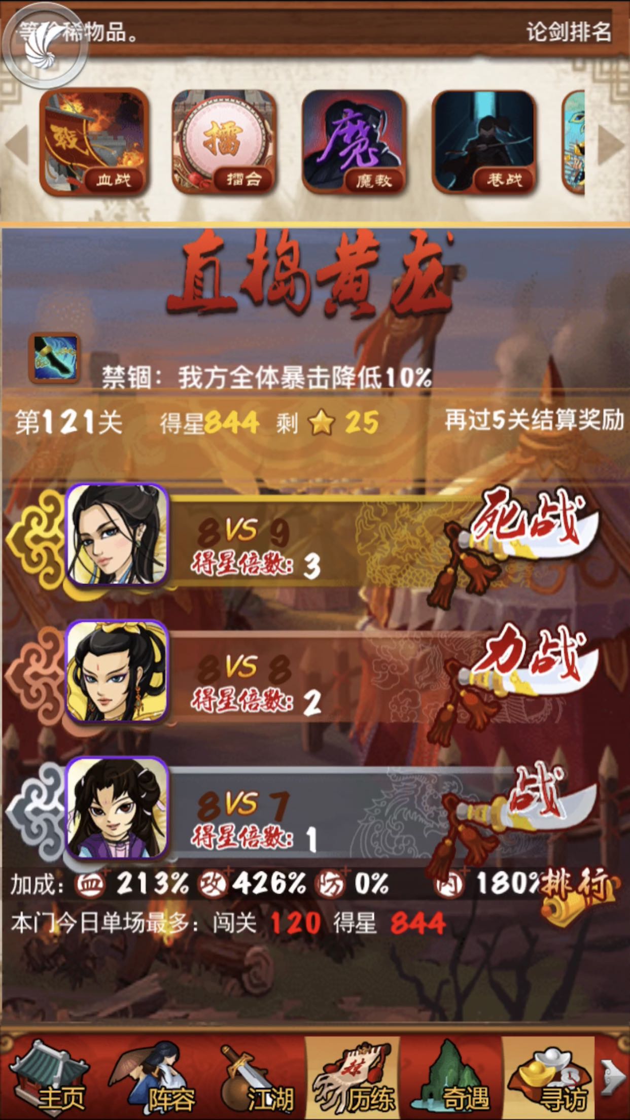 答应各位吧友的100+姥姥今日奉上,纯属娱乐,今天运气特别好,在103、108、120、121关都遇到了姥姥组