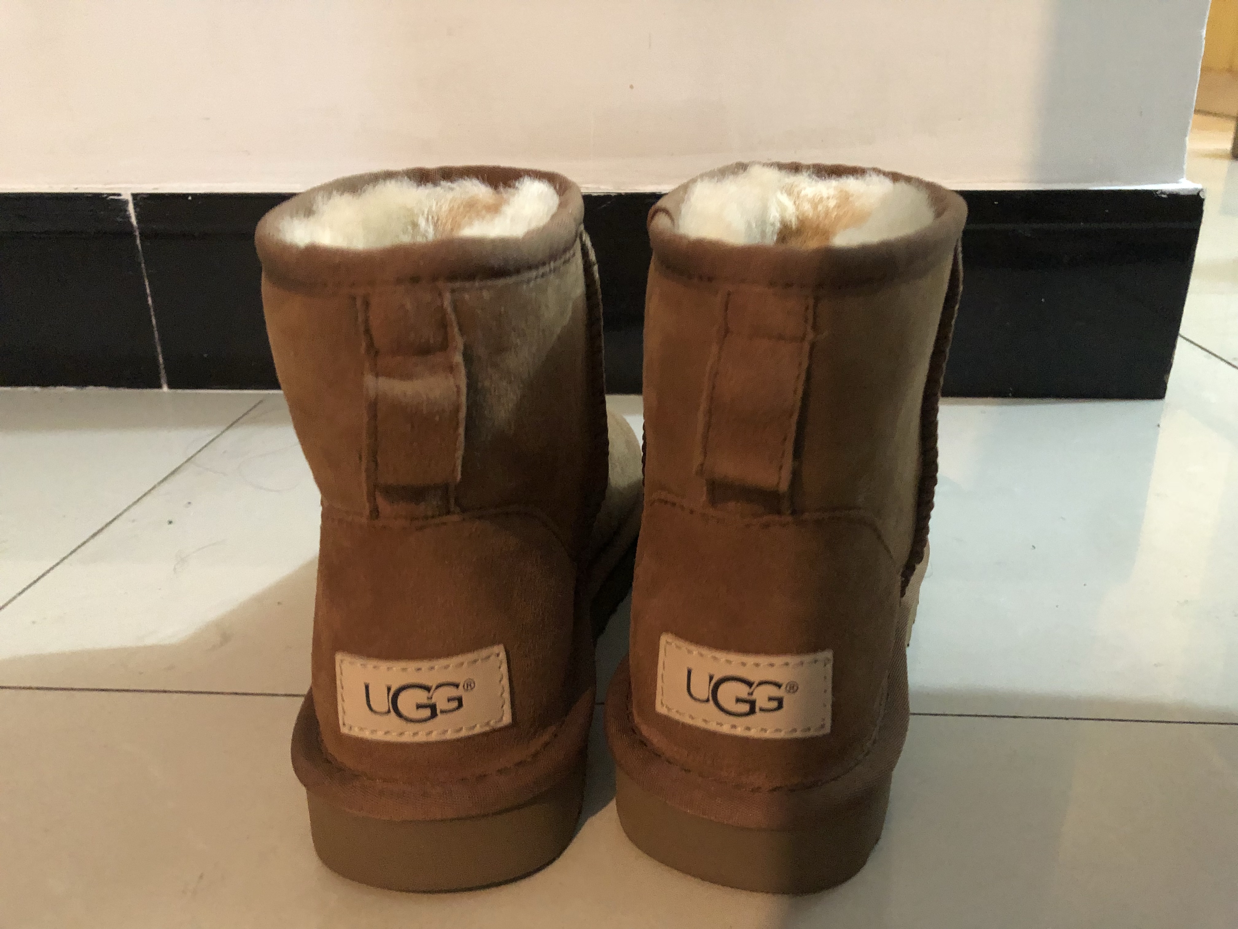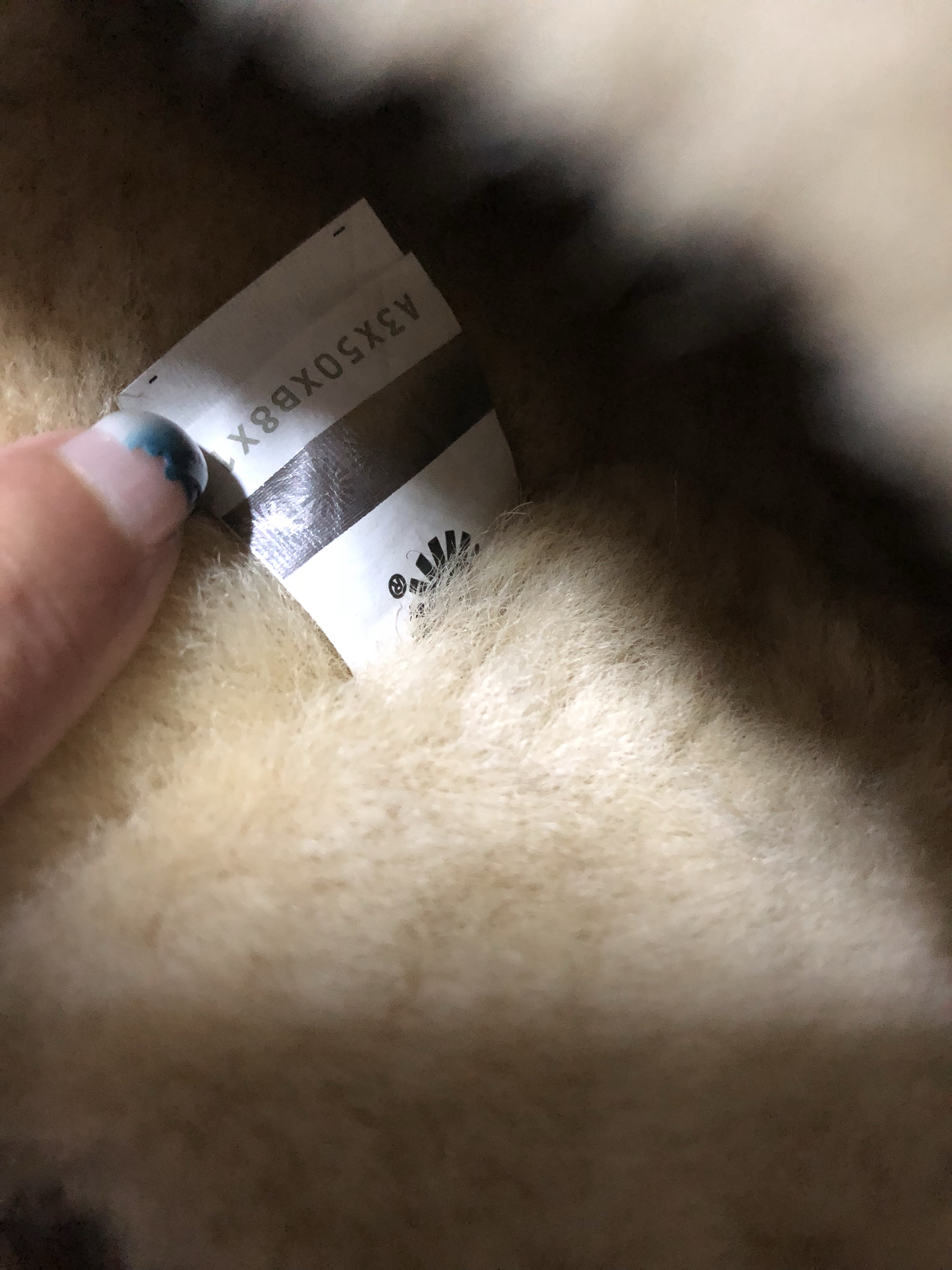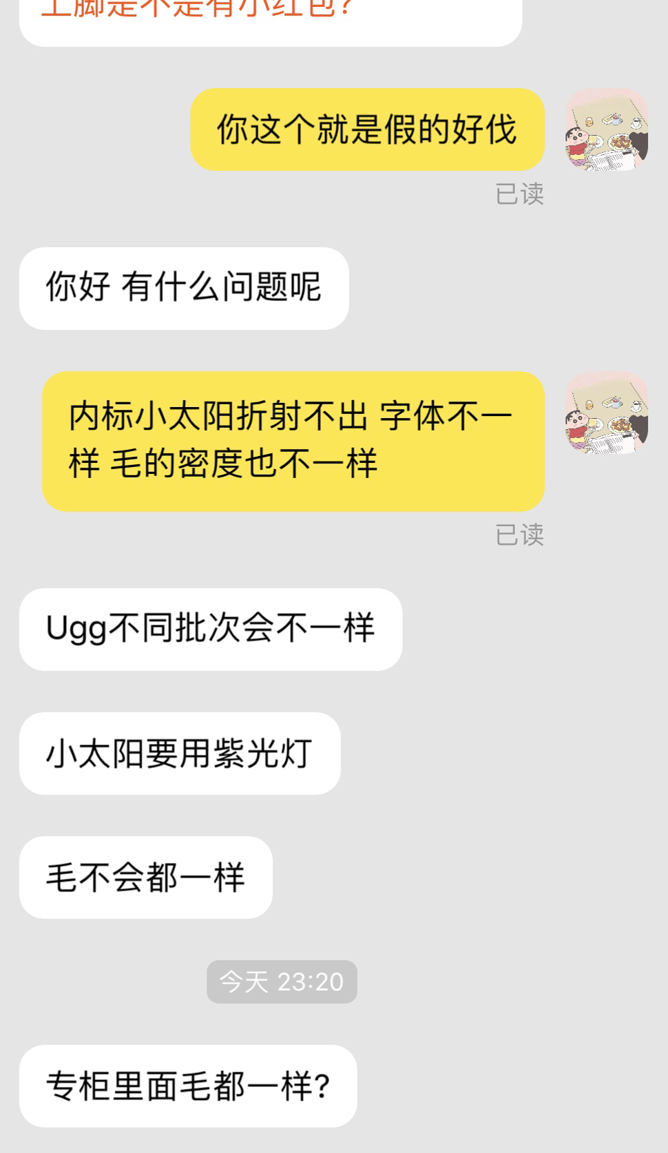 假的 鞋标字体不对 二微码现在就没有这样的 还有后跟标 也不是电脑针车缝的 鞋子是皮毛一体的 这个她说的对
