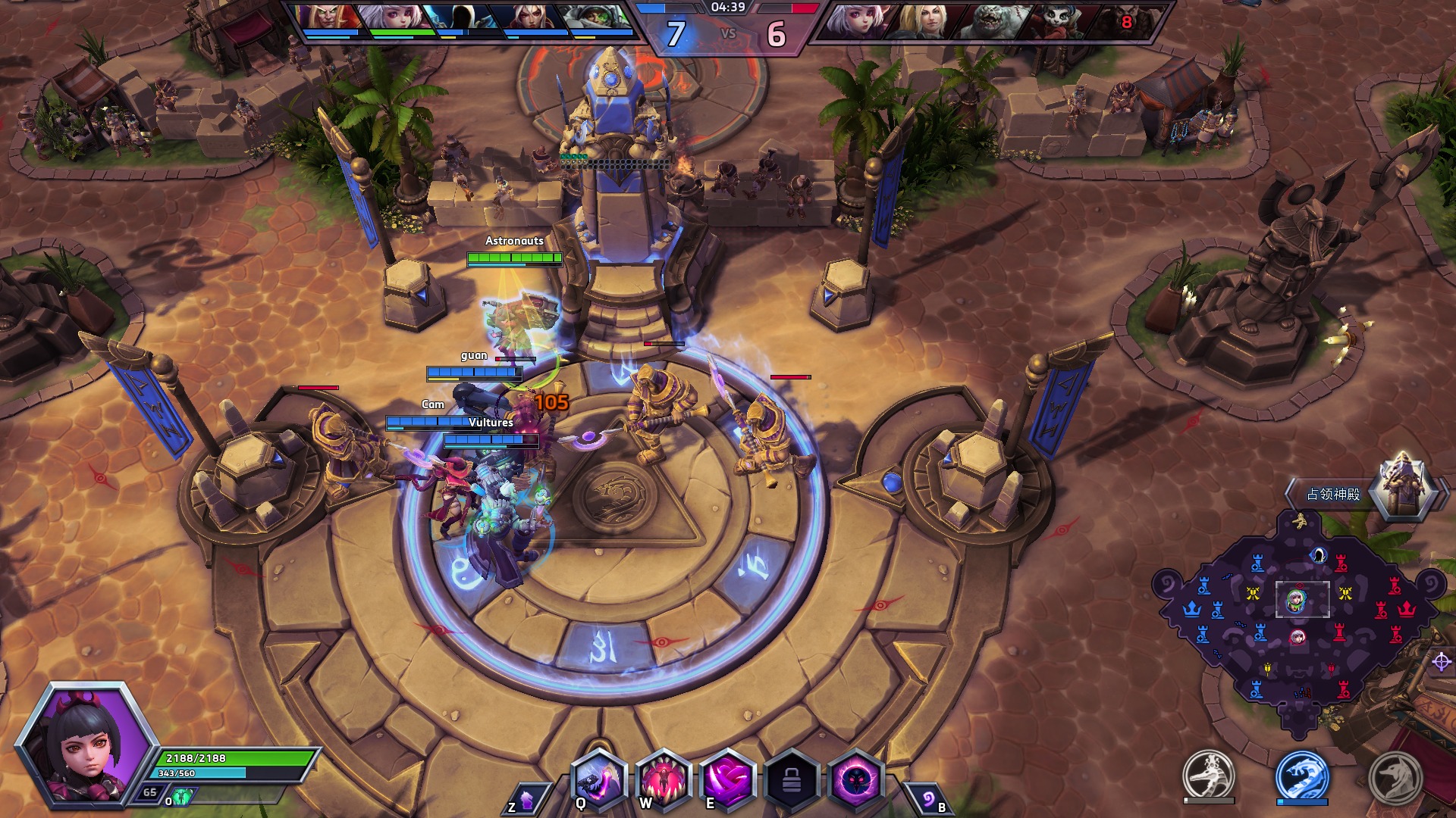 新英雄第二天,没显示该英雄要匹配时间会很长,预计结果等了10分钟。然后进游戏三个奶,四个人占点到最后就打死了大怪。玩NM啊