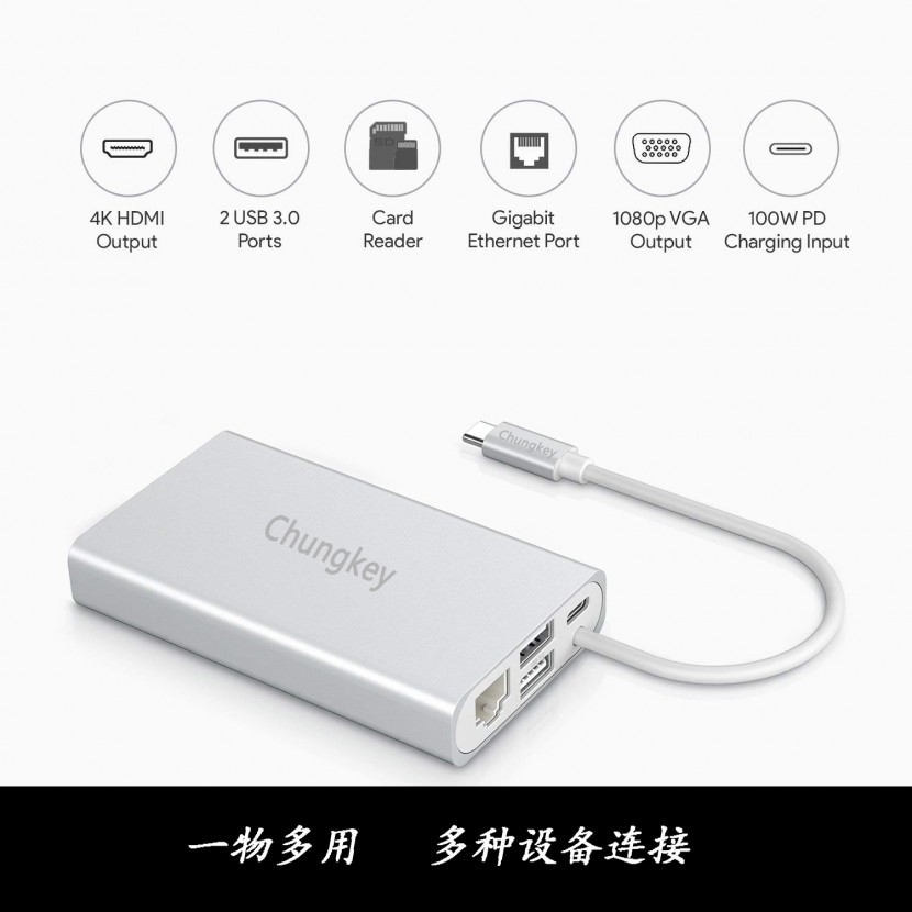 USB Type-C集线器的优点原装直供强劲芯片,低功耗、低发热,八合一强劲功能;
