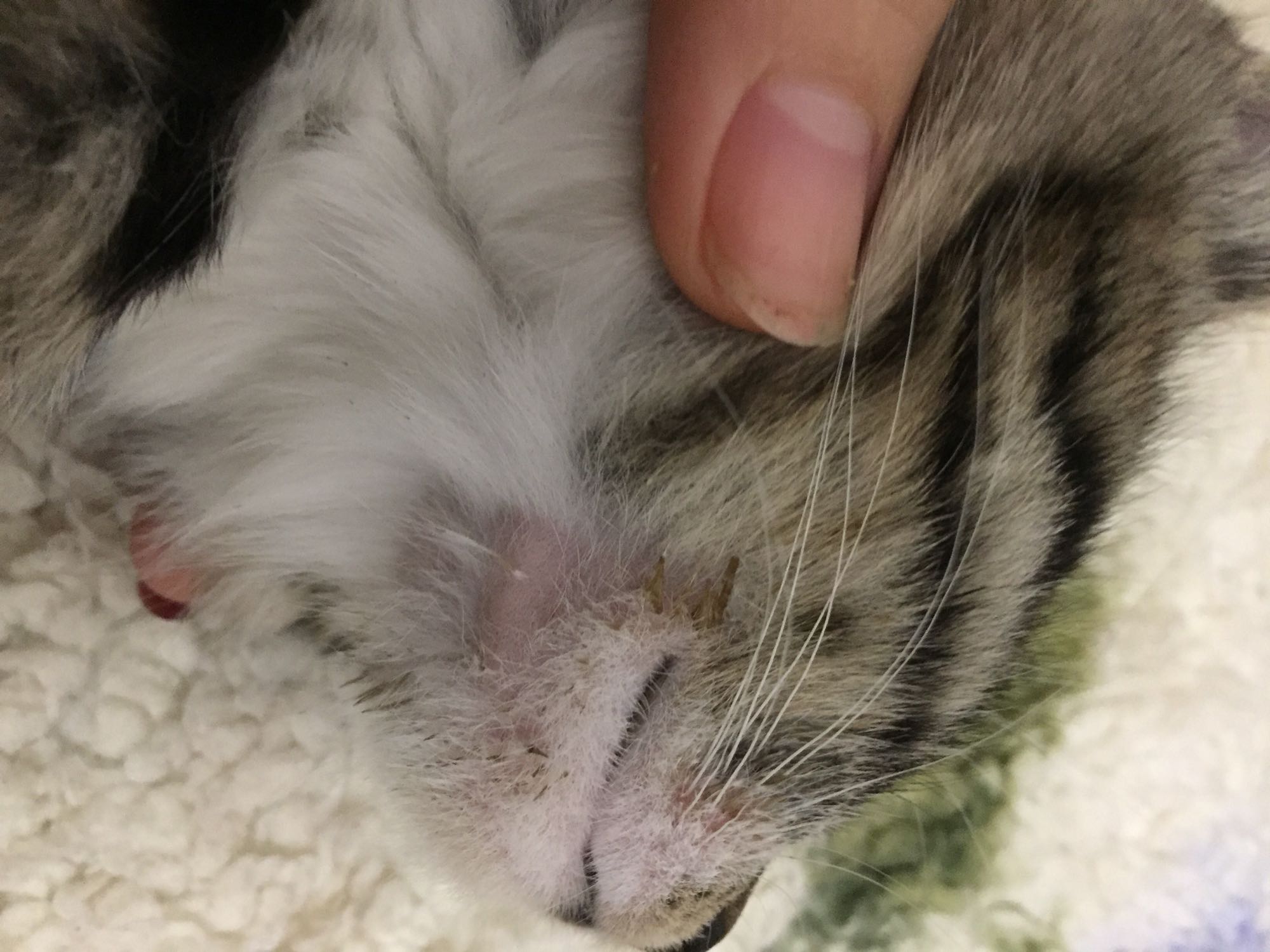 今天突然发现猫咪嘴下边没毛了,这是咋了