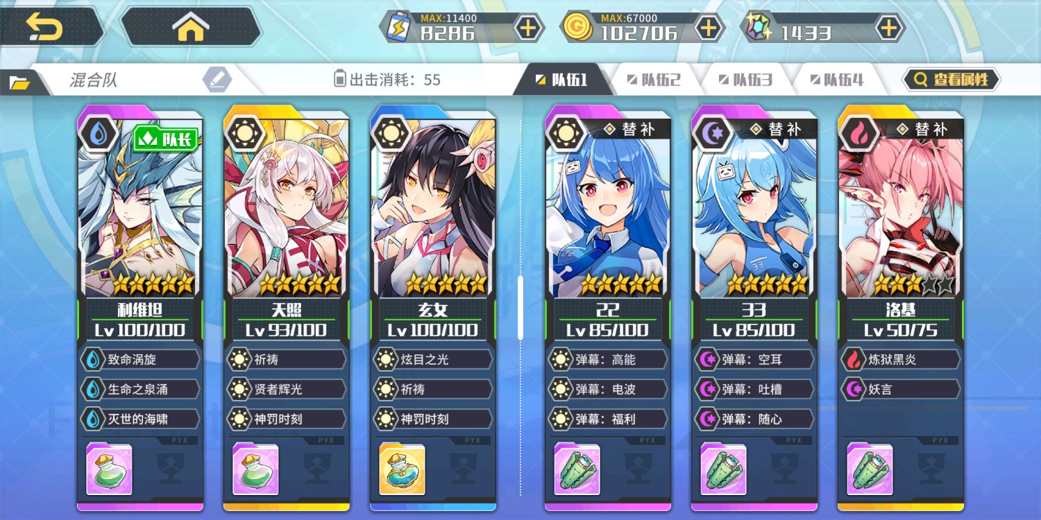 这刷图队伍好奢侈,我即使要带练级蹭经验的也是带的R卡N卡,SR和UR除了上场的都丢去远征了。