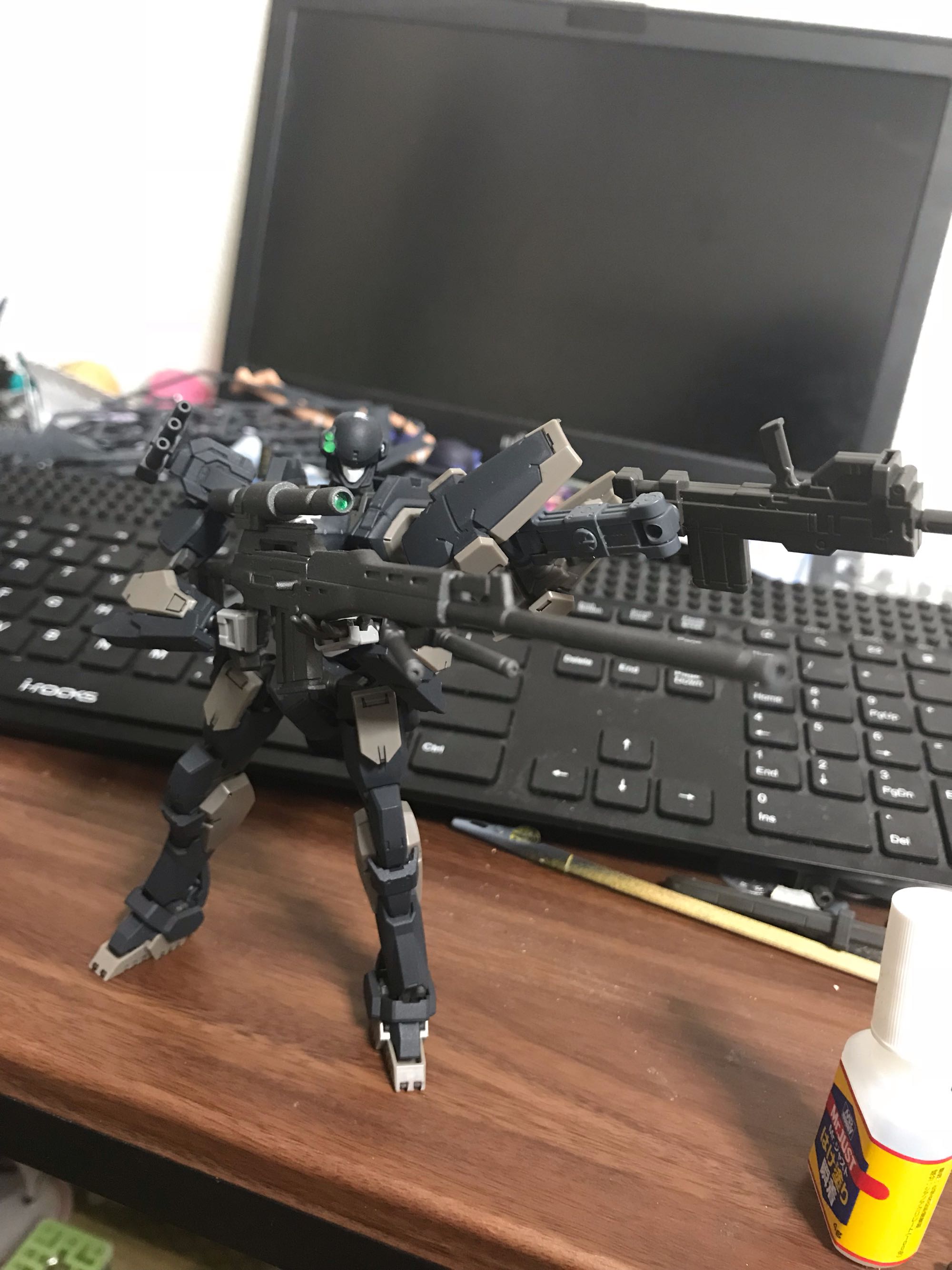 对这个产品线真的是失望至极,首发当日堆到现在已经懒得再想当初的M9小队了,把计划中墨镜改双眼以及不对成的头部强化传感器和机械臂凑合着做出来个抽象的样子就直接顶着70%的湿度胡乱喷漆了事