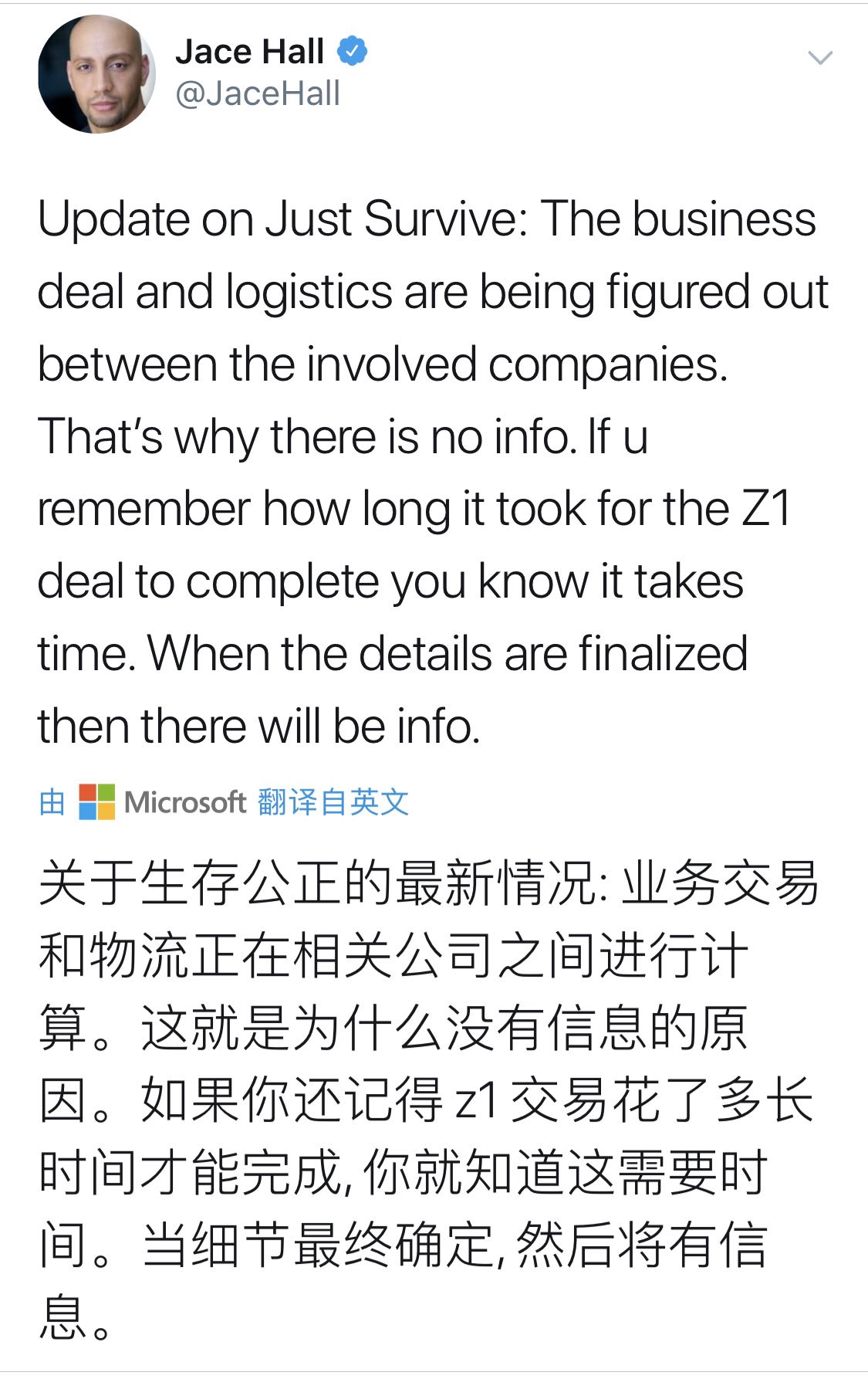 2.关于生存服,目前就是正和黎明进行商业交易,需要时间,前段时间的h1z1也是这样,等待就好。