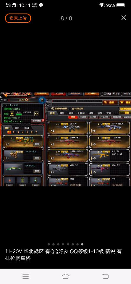 11-20V 华北战区 5个QQ好友 QQ等级6级 精英 有排位赛资格 自己玩的cf号不想玩了,里面还有47000cf点,16v英雄武器。绝版角色王者零,绝版武器金色小号,暗月能量核心火麒麟,低价出售,绝对保真,7个背包全开,抓紧抢购,有任何问题联系我,本人郑重承诺,qq号是新号基本没用过,没几个好友,专门玩cf的号超级会员,您若购买后有啥疑问可随时我