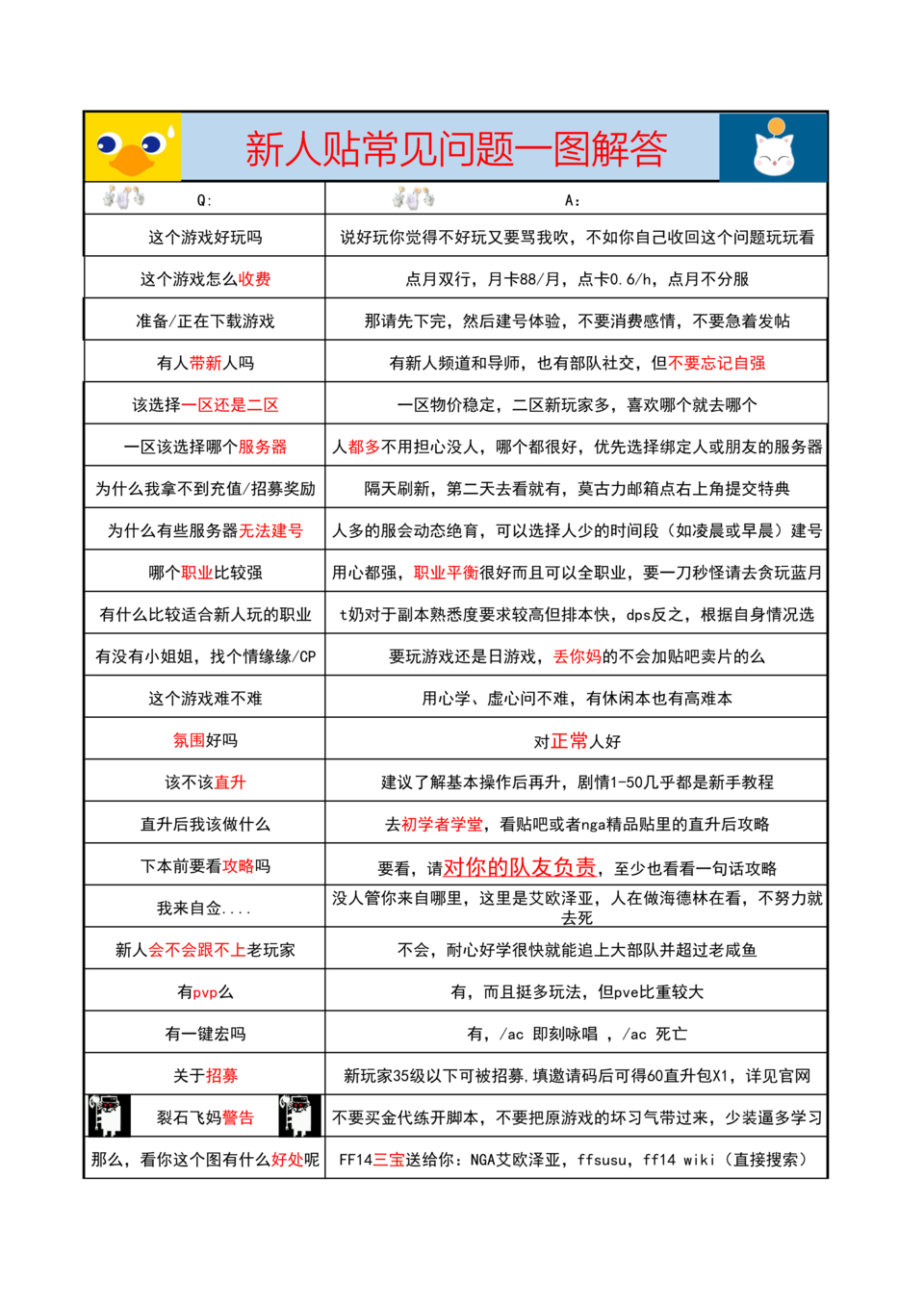 因为基本新人的常见问题这图都有解答。下游戏时可以看看自己喜欢什么类型的职业,新人推荐选个dps职业,奶坦上手难度高而且一旦失误可能造成全队阵亡