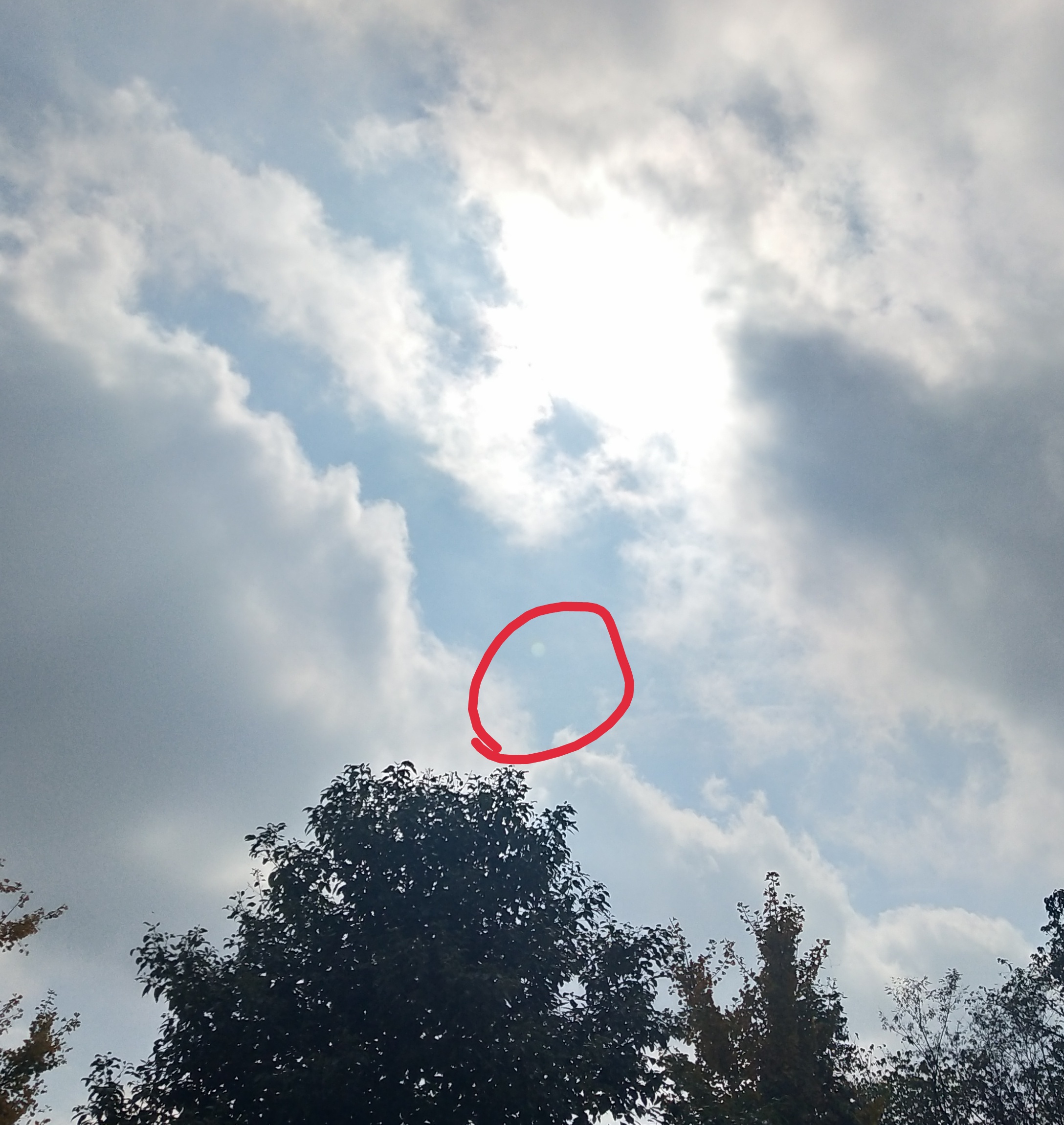 这张图放大了仔细看,被太阳的光挡住了,有人说镜头炫光,真假自辩吧,不想多说。