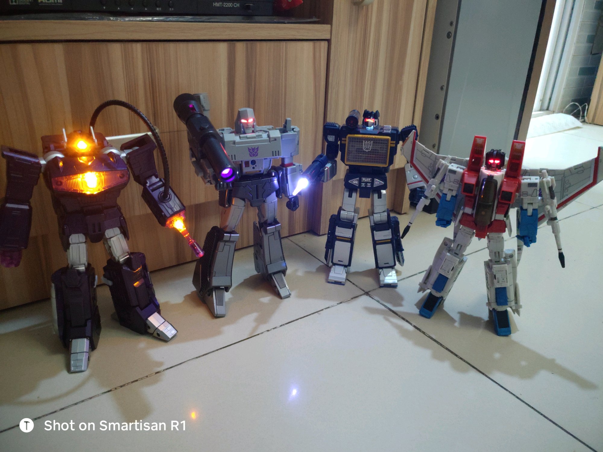 只有声波是官方,威震天是黑曼巴,红蜘蛛是型模,震荡波是c9,不过除了震荡波都配了模道配件包