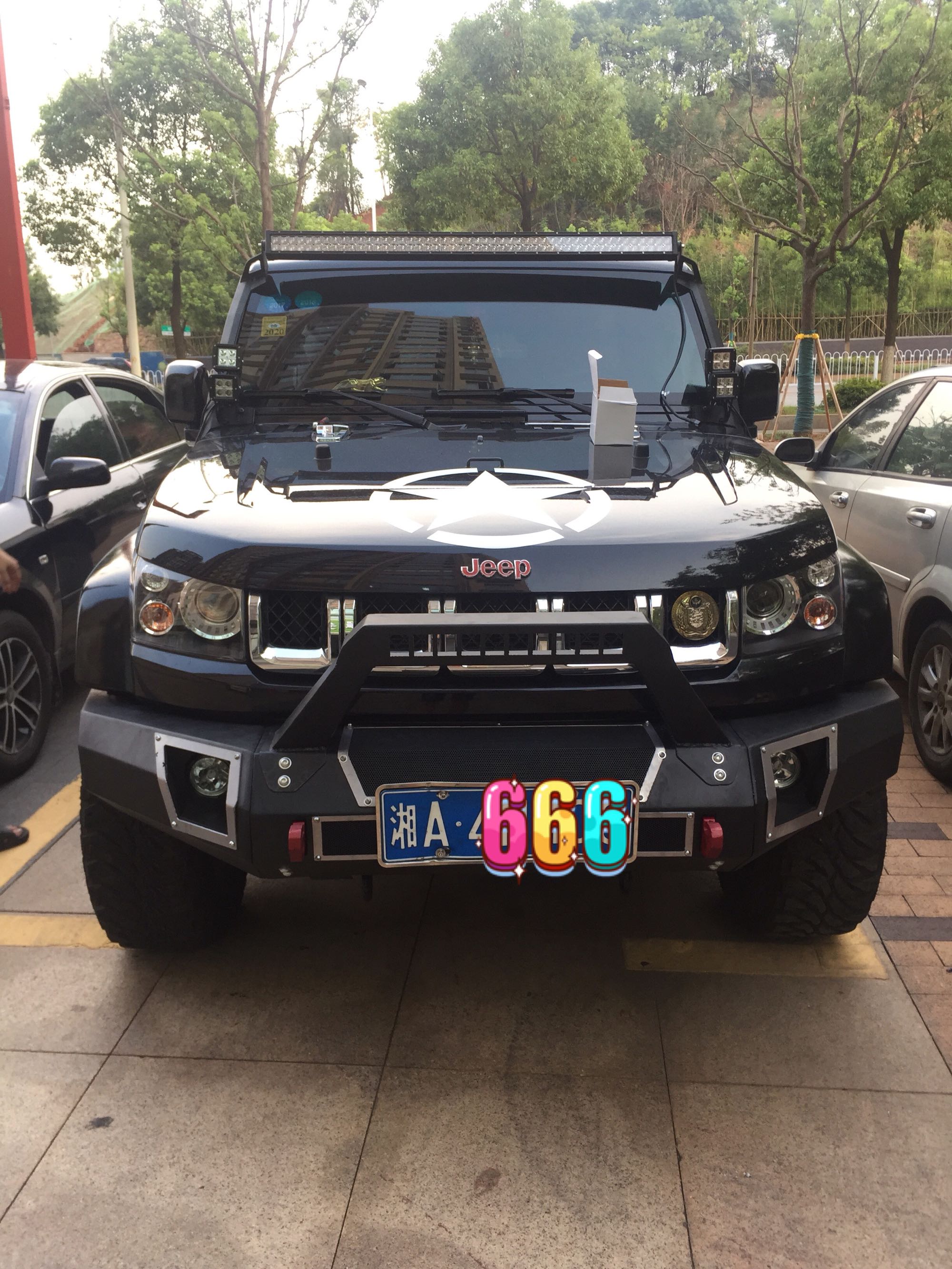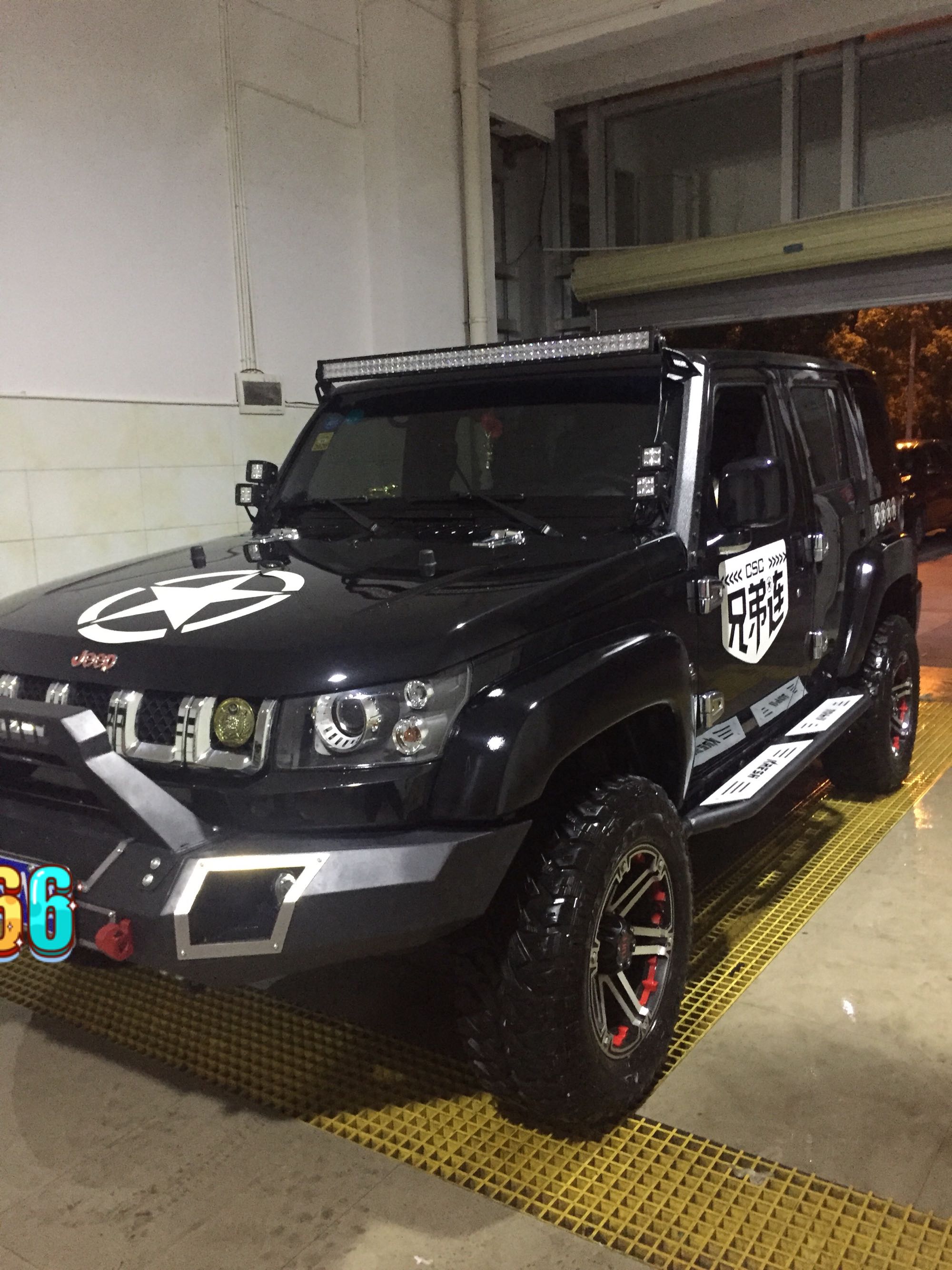 由于在网上订的犀牛前杠与杠灯大小不匹配,灯也打磨了很久勉强套上去,还没到半个月,由于不满车高,和发动机盖过于单调,进行了升高和换机盖改装。