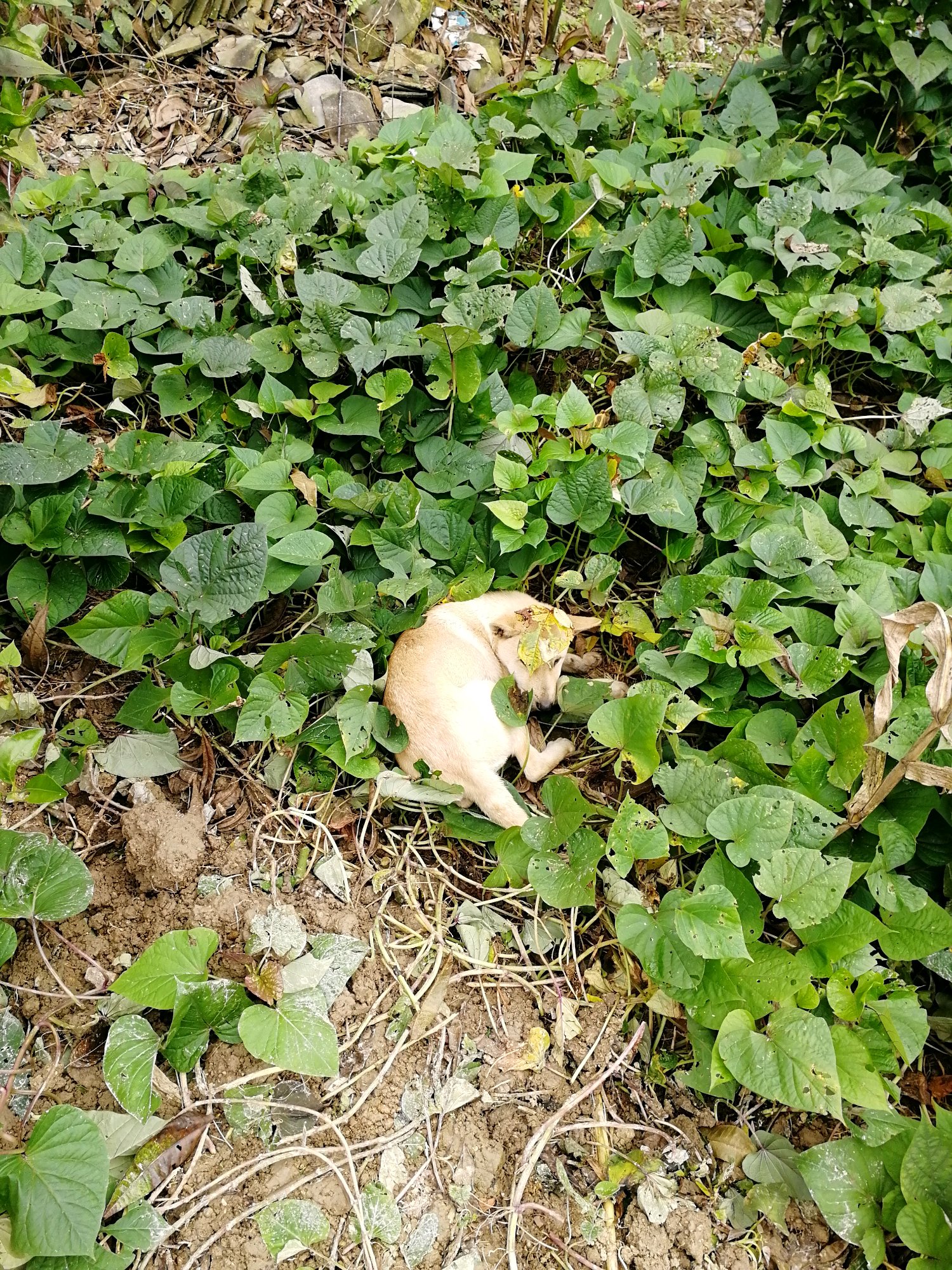 它自己跑到红薯地去了,