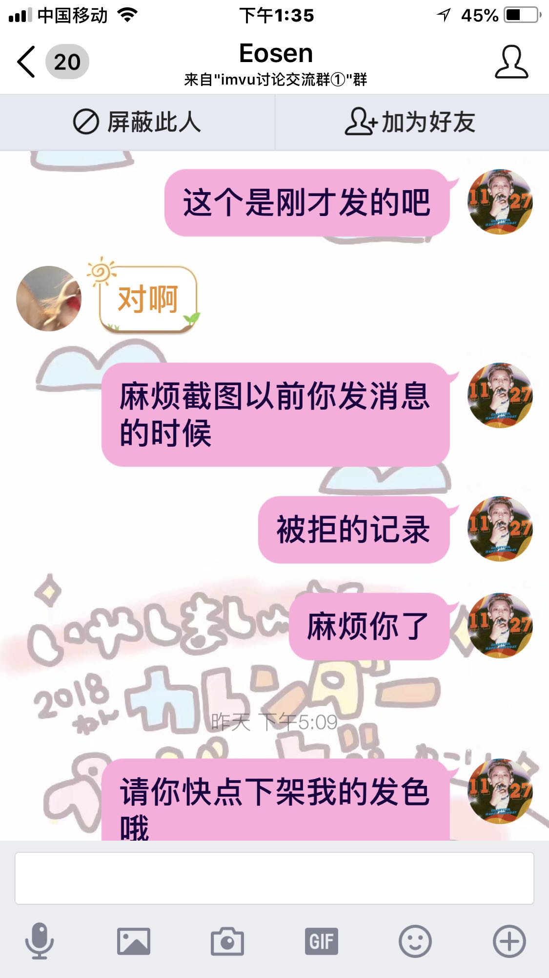 也请大家不要带着有色眼镜说我事多,一直在纠缠,我也是偶然看到fafa店主店里的发色的,而且现在fafa店主提供给我的聊天记录感觉很不对劲呢?不知道是我多想了还是怎样。