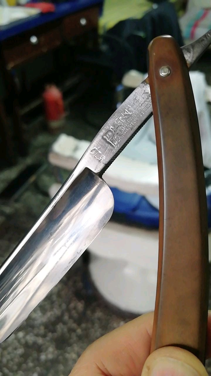 鬼子的直柄也整过几个 说实话那玩意不适合自己给自己刮 因为是偏刃要分左右手的 最主要的是贴钢刀背软磨刀的时候刀背总比刀刃磨得快