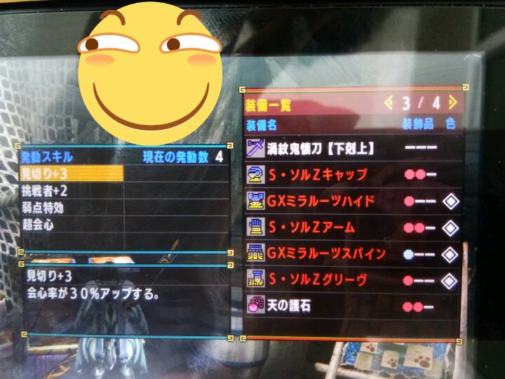 配装如图。拍照时候忘了把武器换成铠裂了。