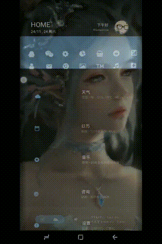 translucent~透 半透化抽屉主题完成体,支持6个预设壁纸,主题颜色可以自己设或随壁纸自动选色。歌曲封面可同步主题颜色。可视化配置中心,主题黑白透明度选择以及透明度调节。