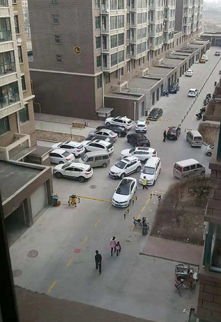 在小区内部还像模像样的画了好些消防通道标识,试问,你把这些车都赶到过道上了,消防车他进的来吗?